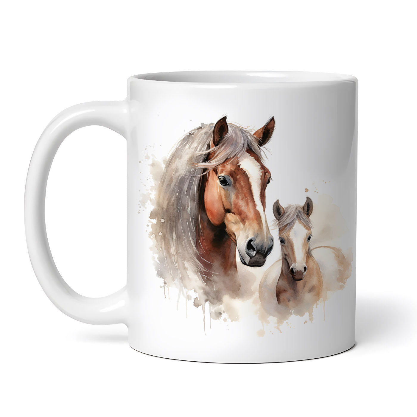 Cana ceramica, Calul si manzul cu pata alba in frunte, NO4785, 330 ml, Multicolor