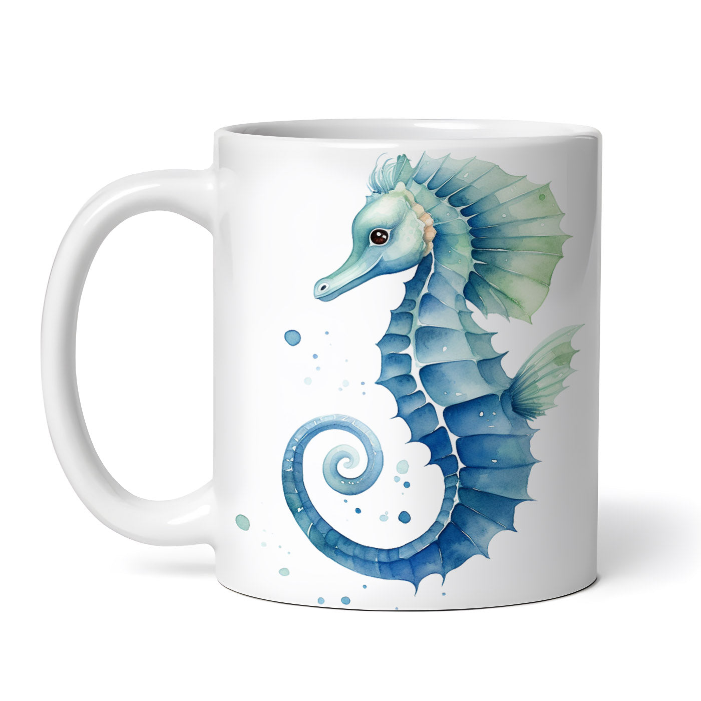 Cana ceramica, Calut de mare albastru cu aripioare verzi, NO1088, 330 ml, Multicolor