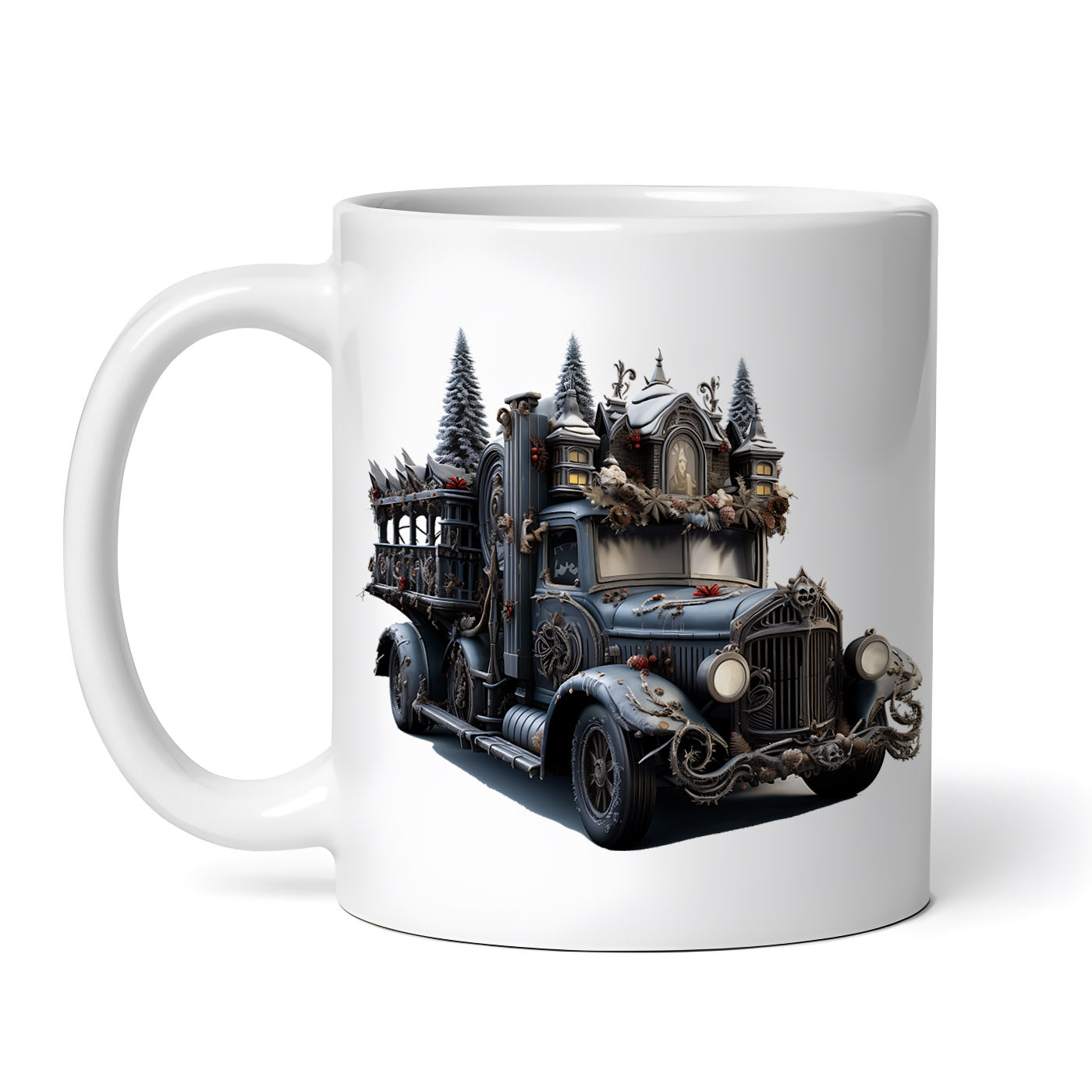 Cana ceramica, Camionul negru cu brazi, NO4588, 330 ml, Multicolor