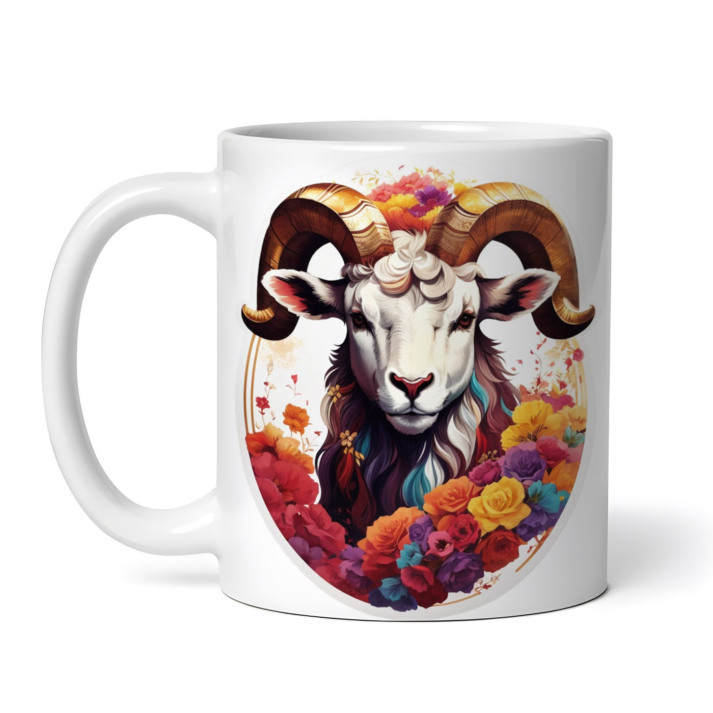 Cana ceramica, Cap de berbec cu ghirlanda de flori, NO7685, 330 ml, Multicolor