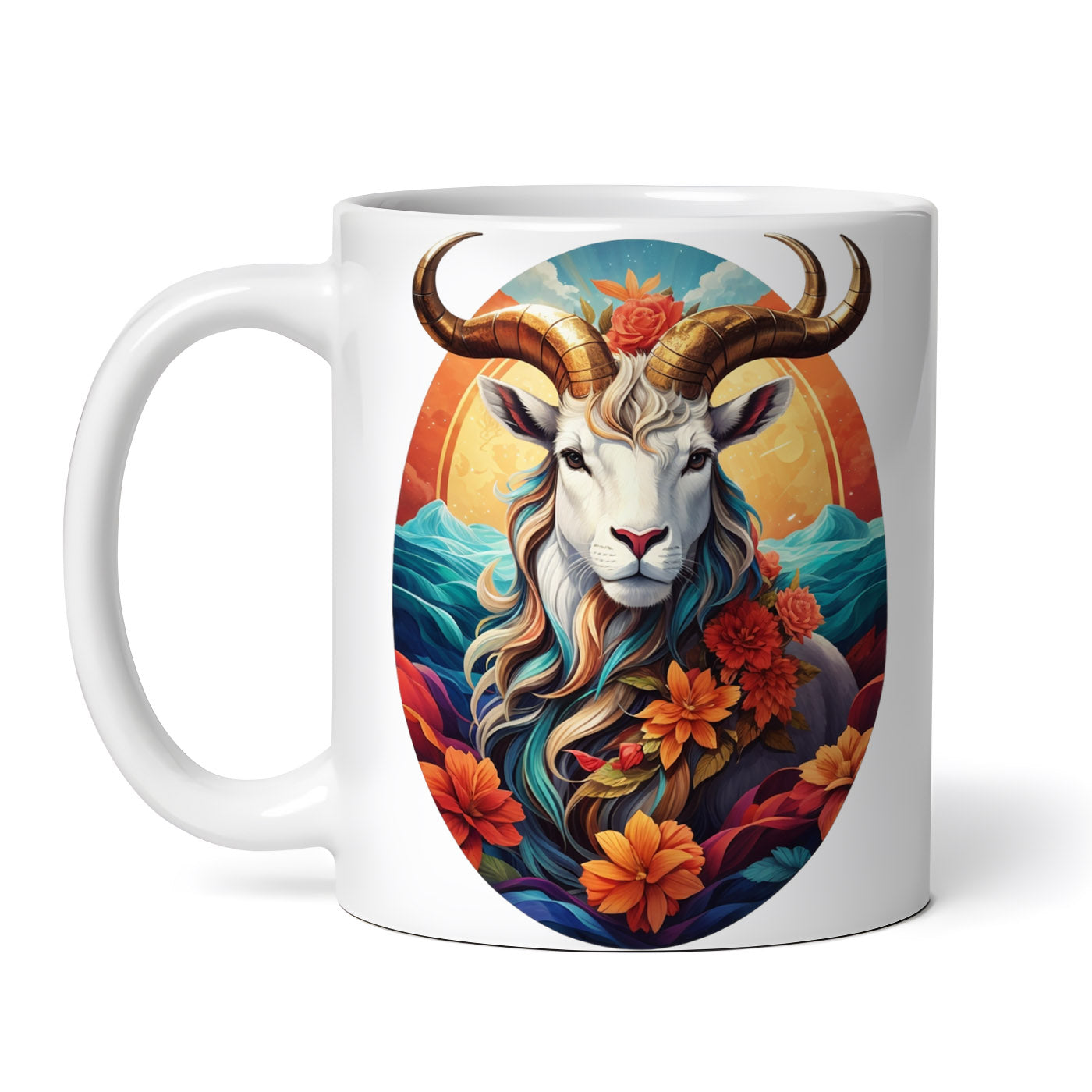 Cana ceramica, Capra cu coarne arcuite simbol zodia capricorn, NO7939, 330 ml, Multicolor