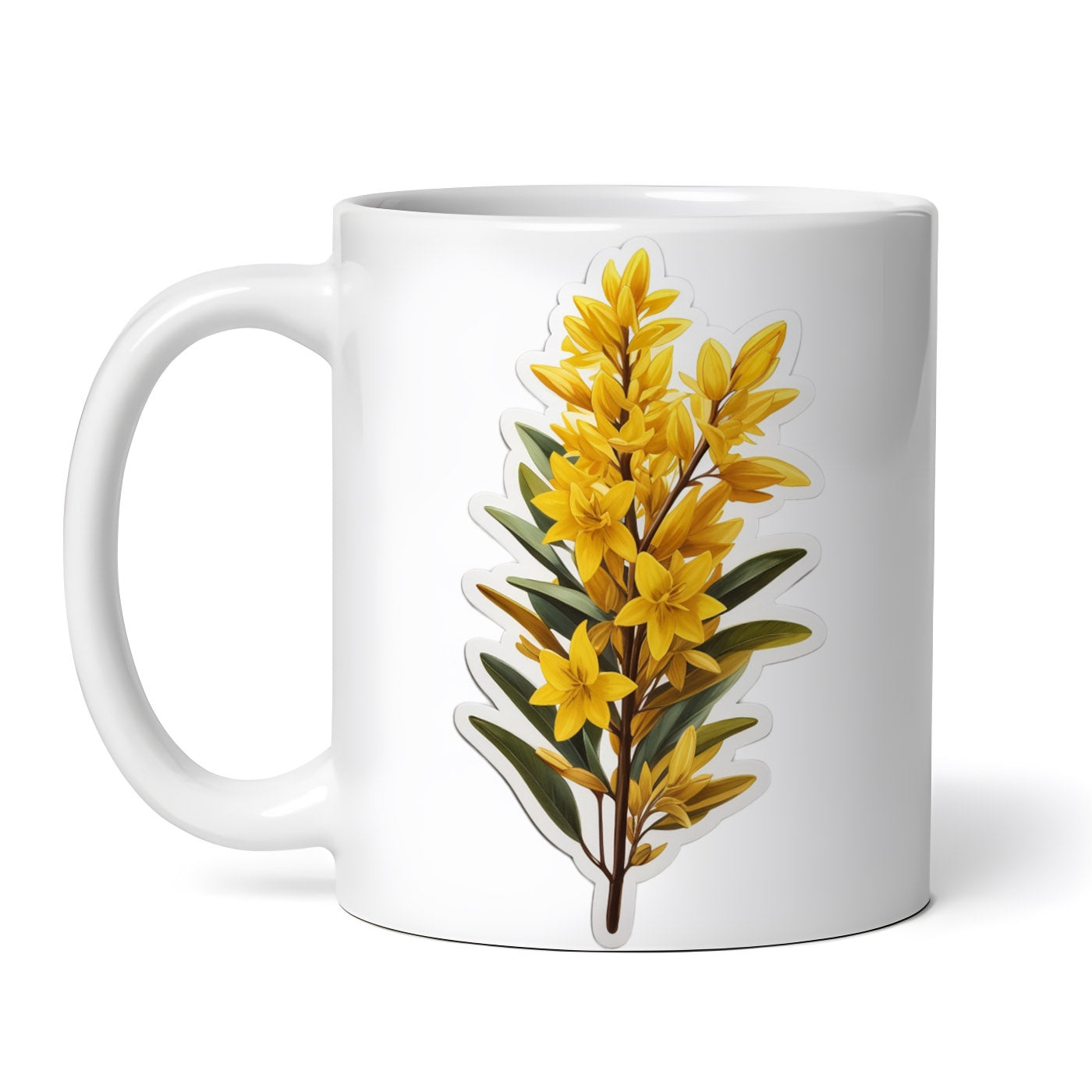 Cana ceramica, Creanga cu flori de Forsitia, NO8183, 330 ml, Multicolor