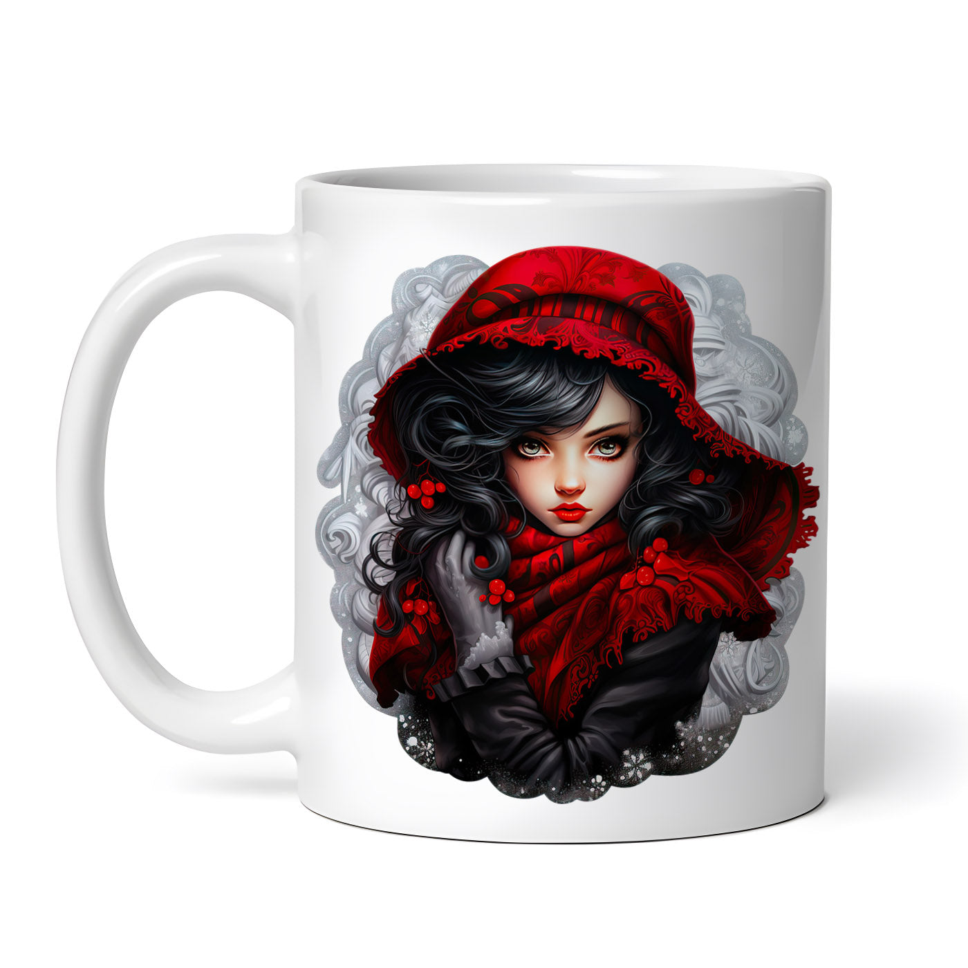 Cana ceramica, Fata cu haina neagra si palarie rosie, NO3063, 330 ml, Multicolor