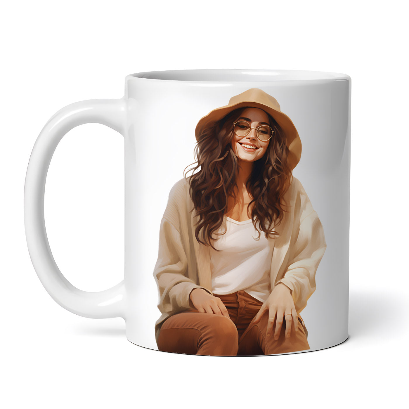 Cana ceramica, Fata cu palarie, NO5223, 330 ml, Multicolor