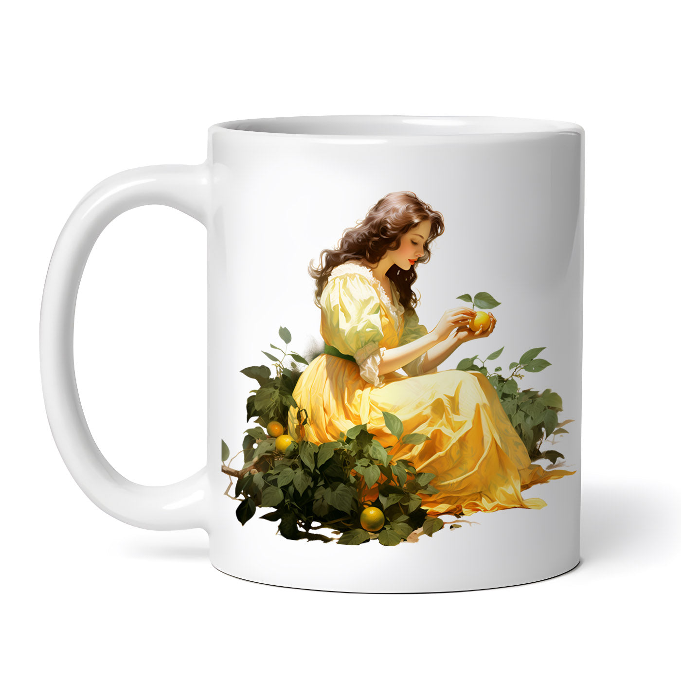 Cana ceramica, Fata cu portocale, NO4684, 330 ml, Multicolor