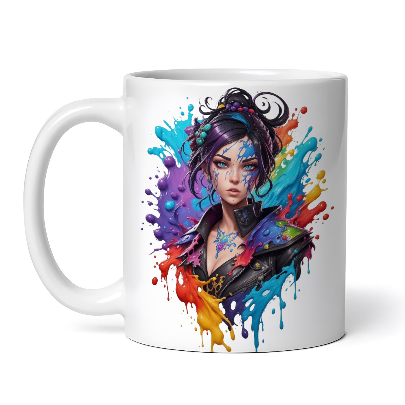 Cana ceramica, Fata curcubeu, NO7026, 330 ml, Multicolor