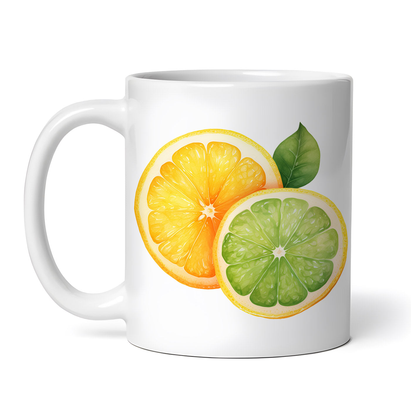 Cana ceramica, Felie de lamaie si portocala, NO5272, 330 ml, Multicolor