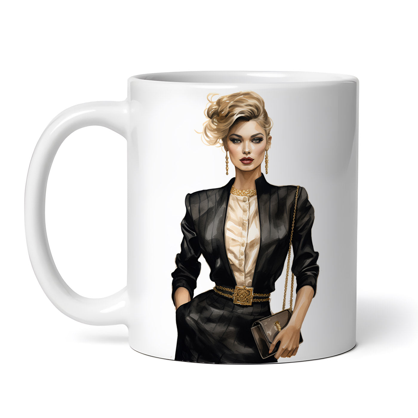 Cana ceramica, Femeie in negru, NO5963, 330 ml, Multicolor