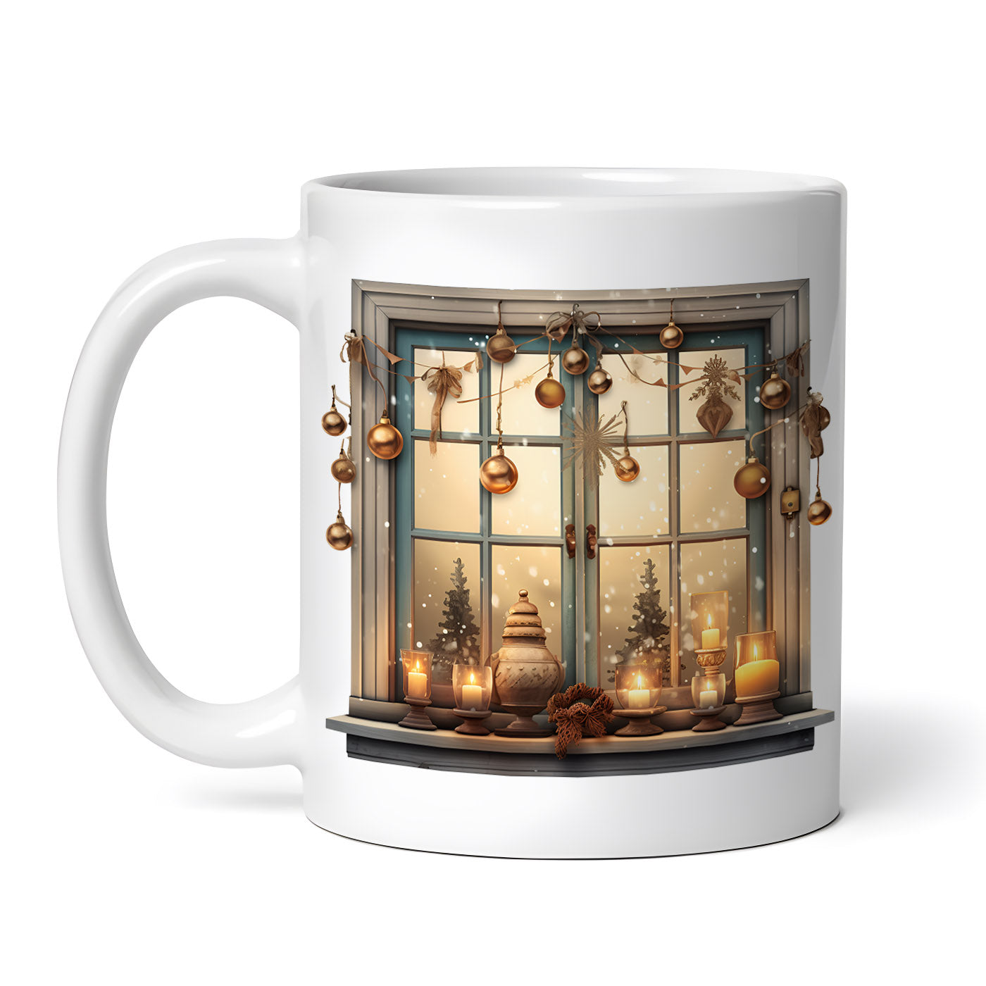 Cana ceramica, Fereastra impodobita de craciun, NO5179, 330 ml, Multicolor