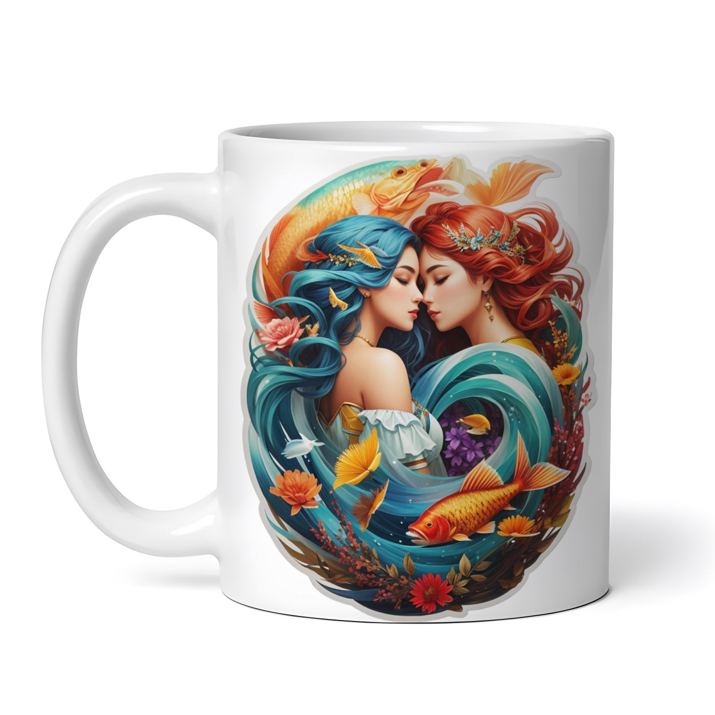 Cana ceramica, Fete simbol zodia pesti, NO8727, 330 ml, Multicolor