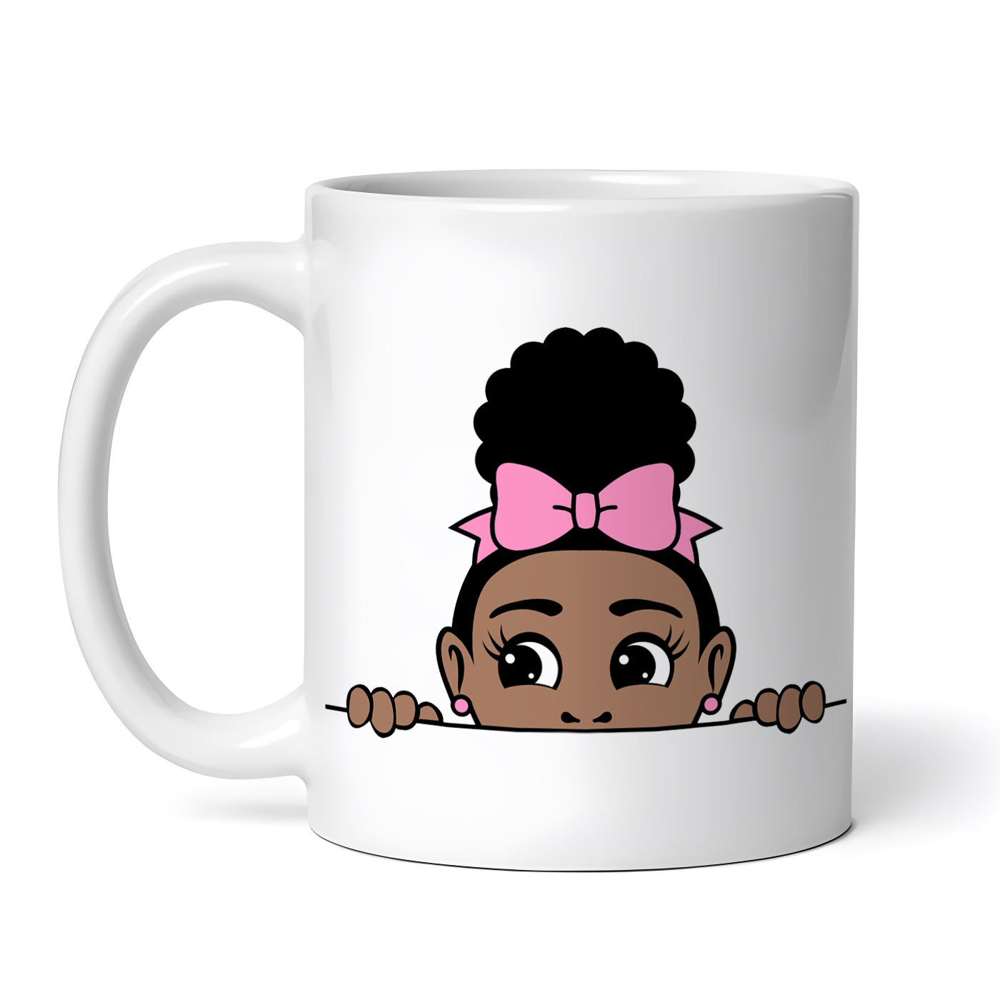 Cana ceramica, Fetita afro cu funda in par, NO10096, 330 ml, Multicolor