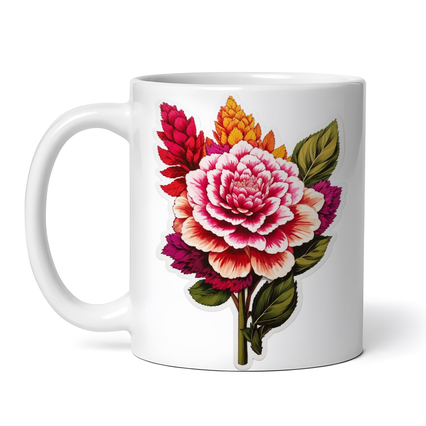 Cana ceramica, Floare Creasta cocosului cu codita scurta, NO7957, 330 ml, Multicolor