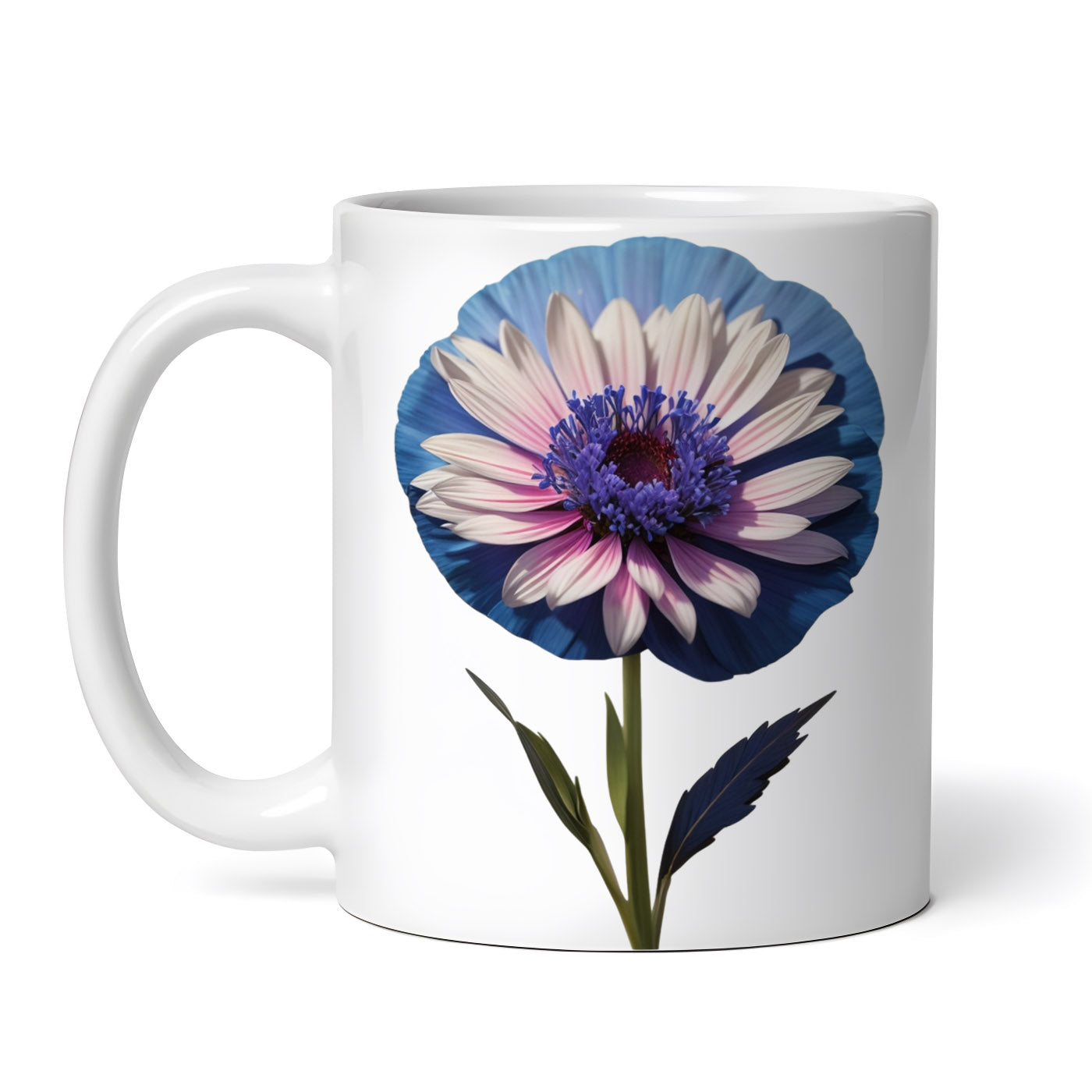 Cana ceramica, Floare de albastrica, NO8015, 330 ml, Multicolor