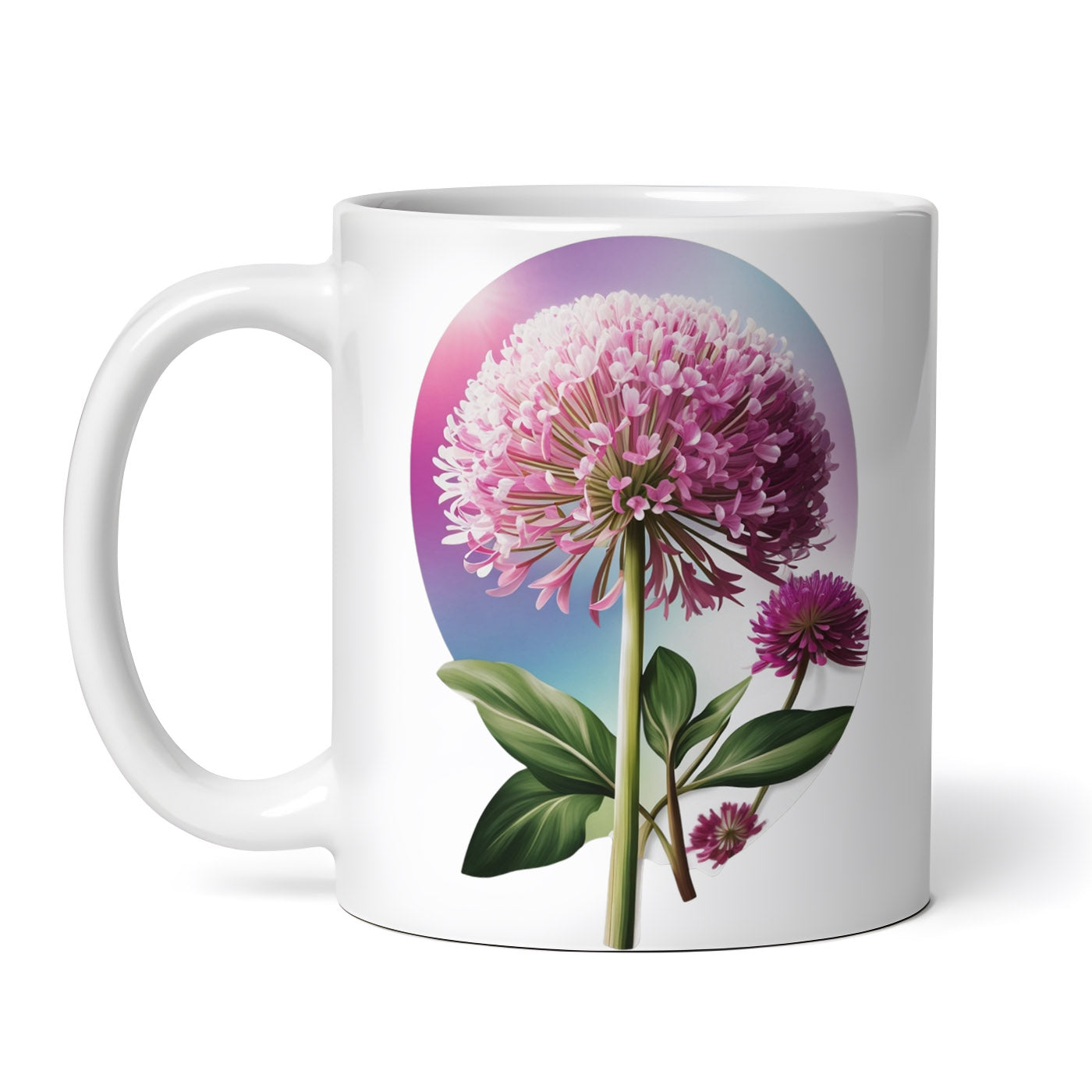 Cana ceramica, Floare de Allium cu boboc, NO7609, 330 ml, Multicolor
