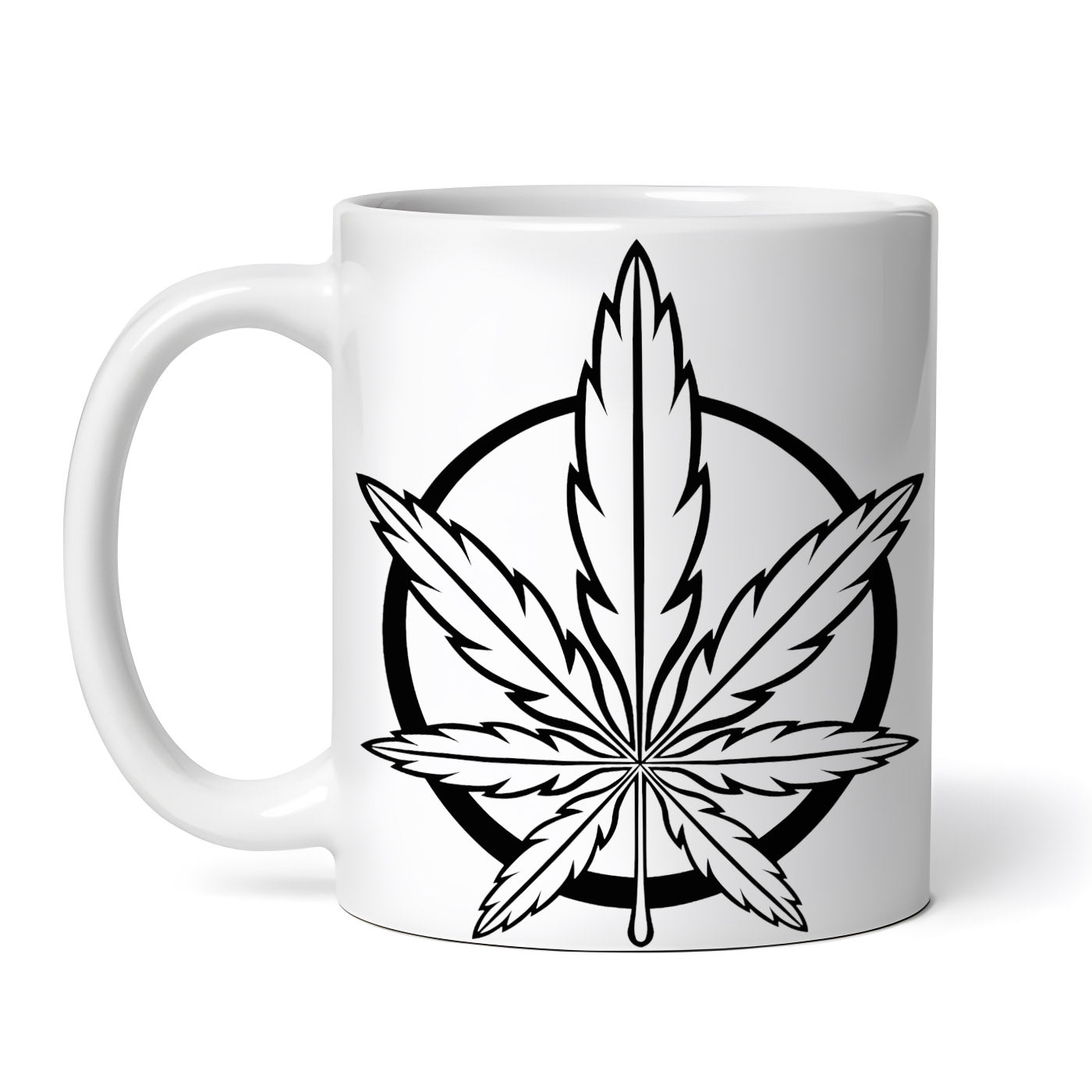 Cana ceramica, Floare de canabis cu cerc, NO10105, 330 ml, Multicolor