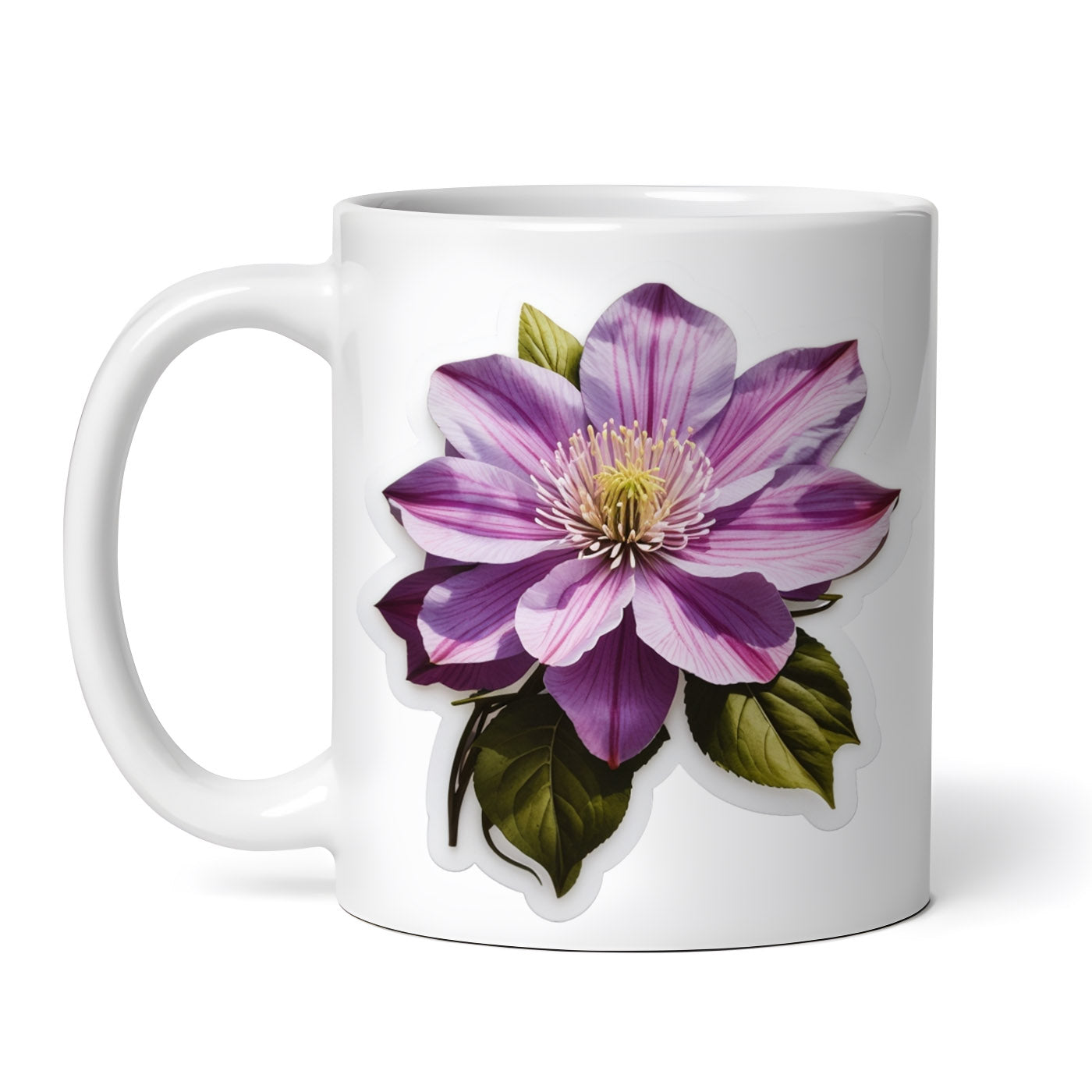 Cana ceramica, Floare de Clematis, NO7994, 330 ml, Multicolor