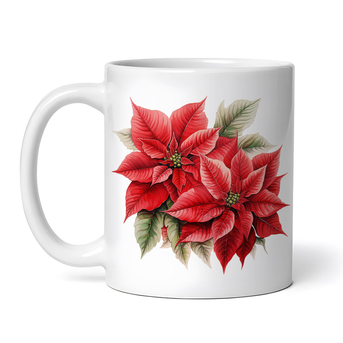 Cana ceramica, Floare de craciun rosie, NO5749, 330 ml, Multicolor