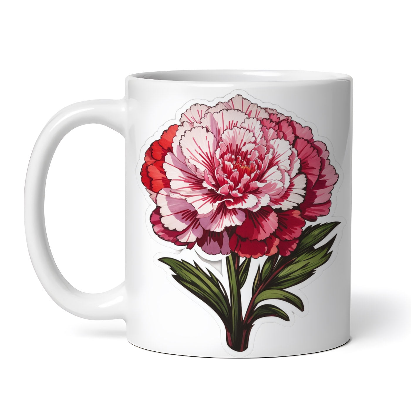 Cana ceramica, Floare de garofita, NO8090, 330 ml, Multicolor