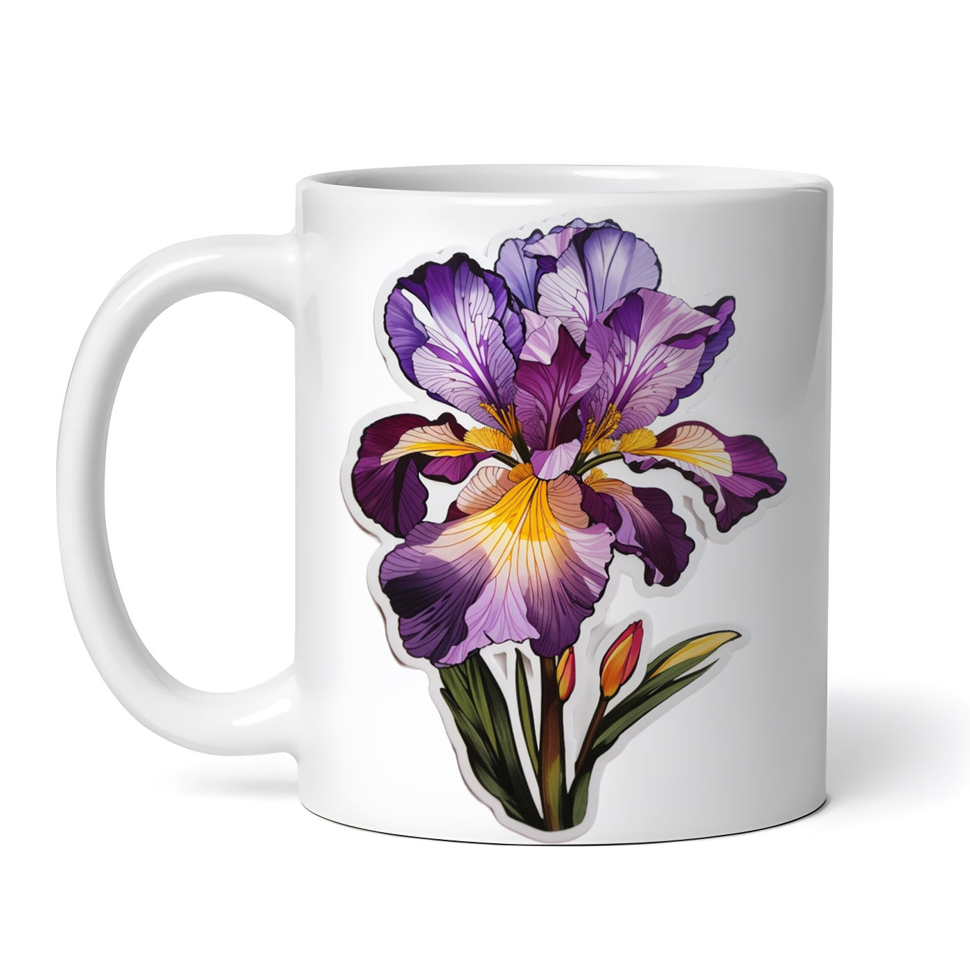 Cana ceramica, Floare de iris, NO8370, 330 ml, Multicolor