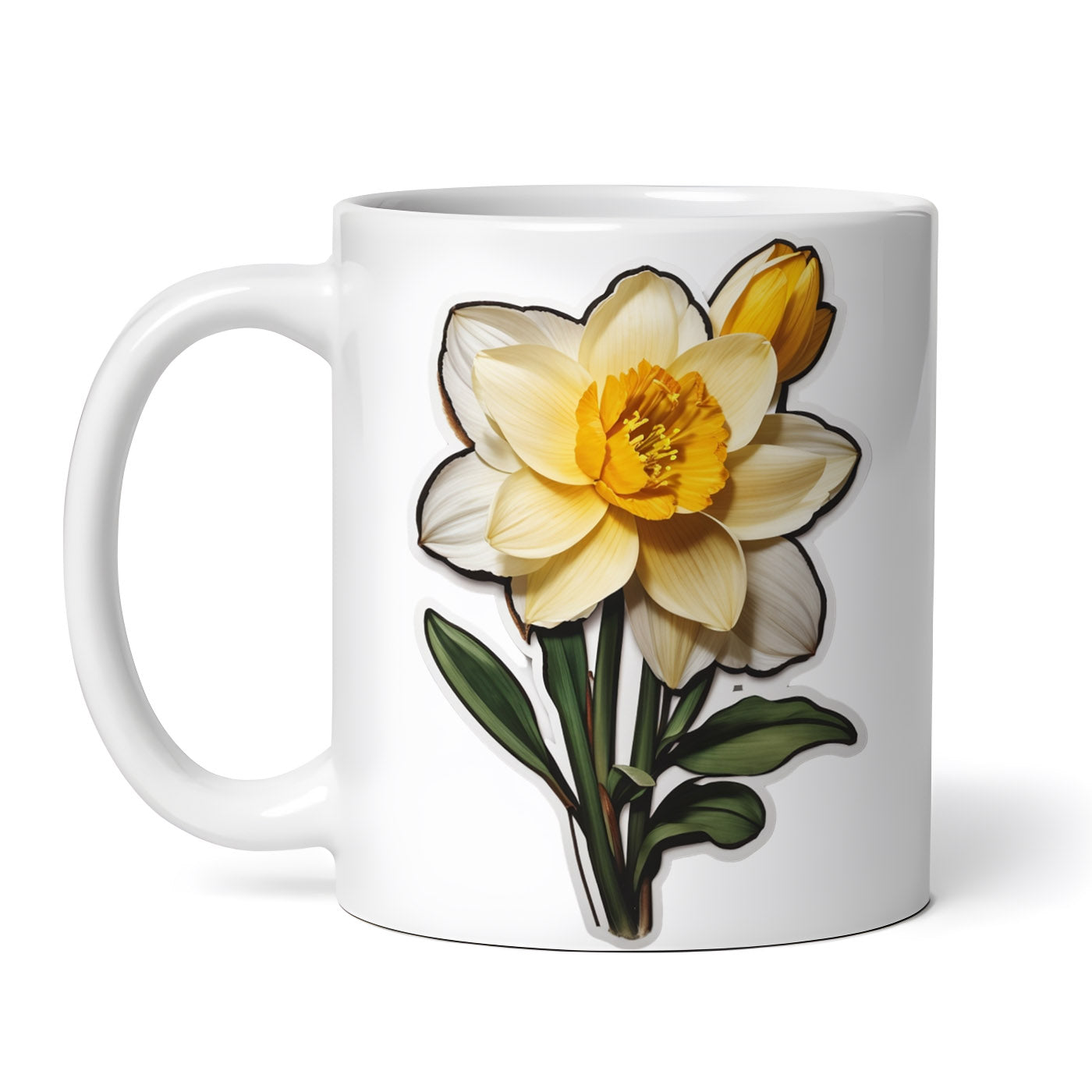 Cana ceramica, Floare de narcisa, NO8050, 330 ml, Multicolor