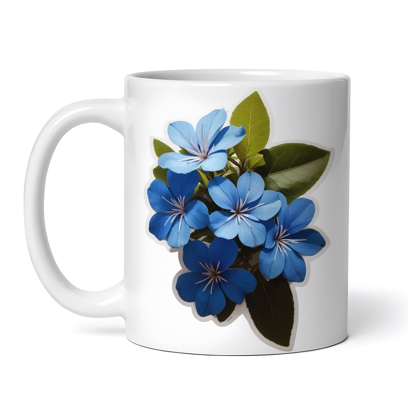 Cana ceramica, Floarea dragostei Plumbago, NO8738, 330 ml, Multicolor
