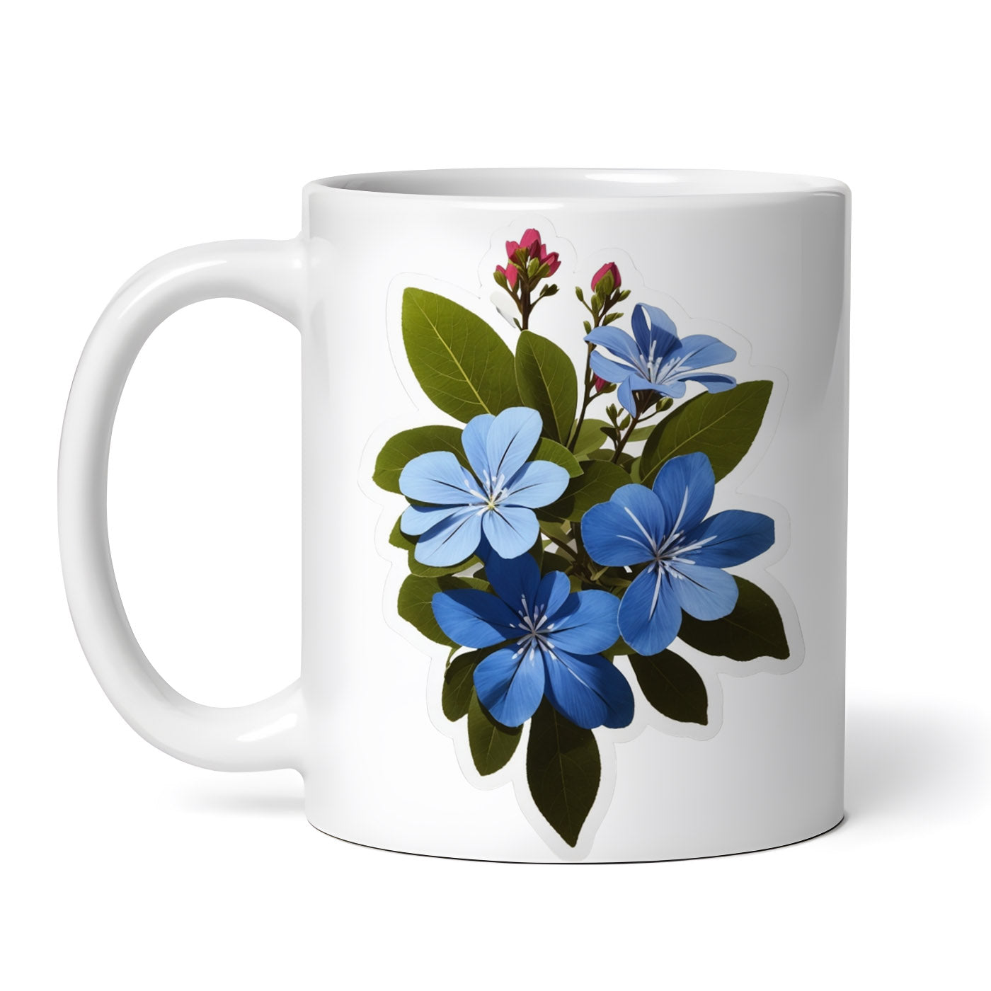 Cana ceramica, Floarea dragostei Plumbago, NO8740, 330 ml, Multicolor