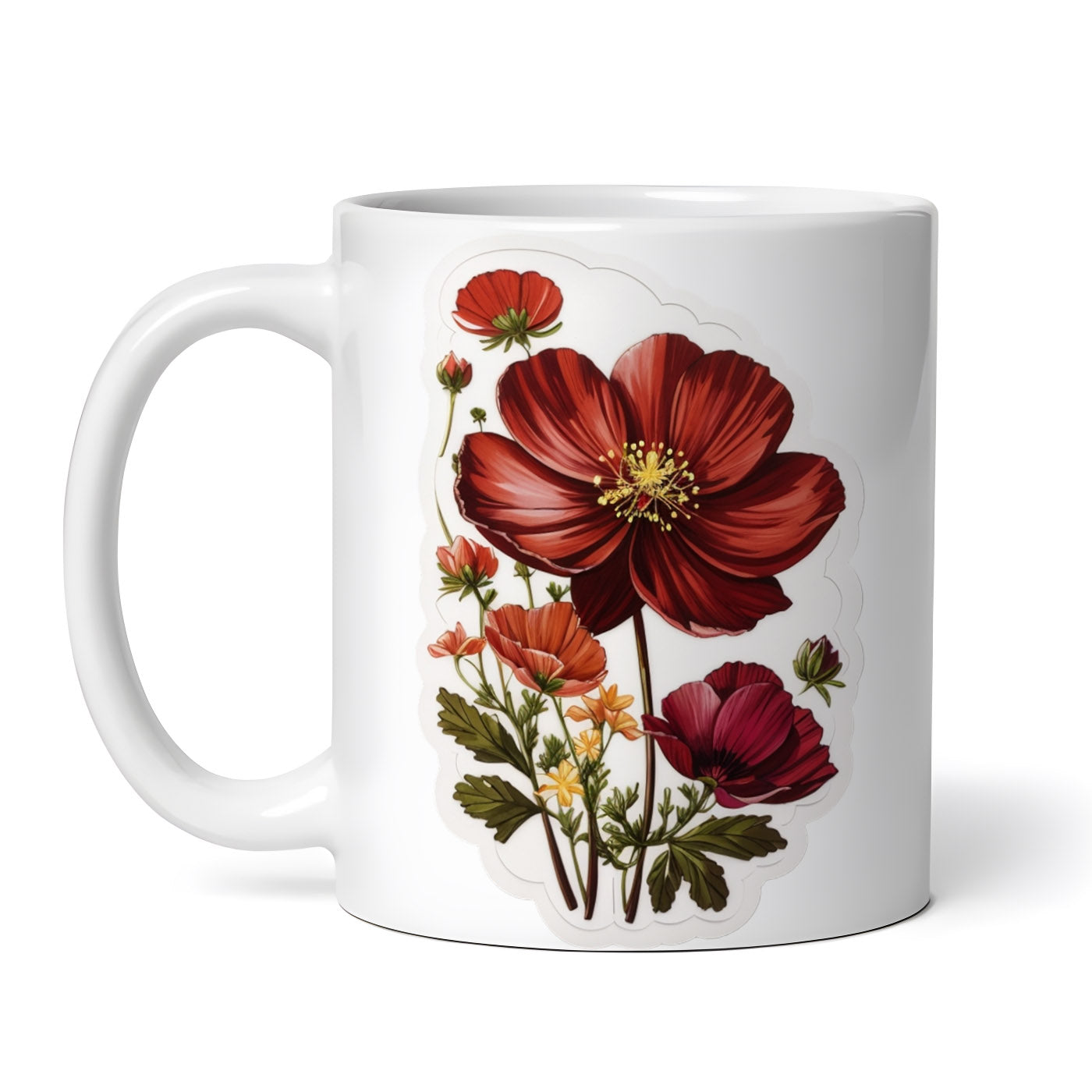 Cana ceramica, Flori Cosmos flori de ciocolata, NO7979, 330 ml, Multicolor