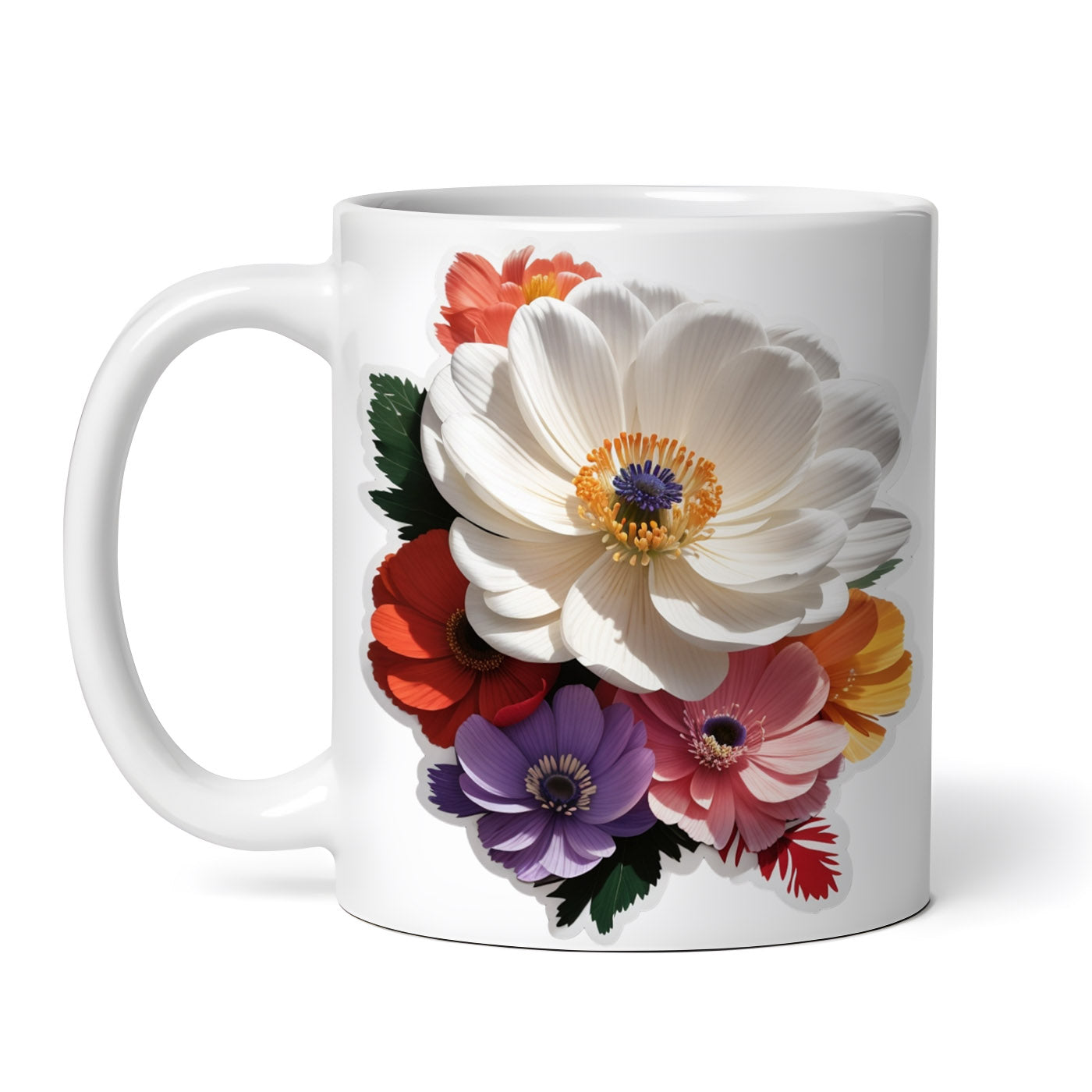 Cana ceramica, Flori de Anemone, NO7654, 330 ml, Multicolor