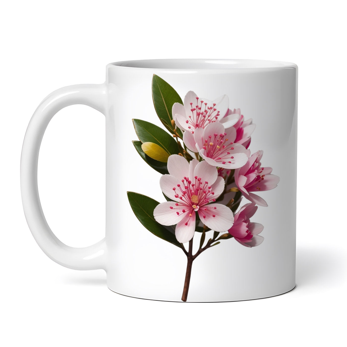 Cana ceramica, Flori de ceara crenguta cu flori si frunze, NO9044, 330 ml, Multicolor