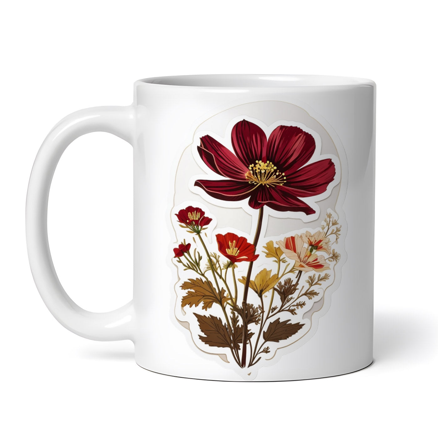Cana ceramica, Flori de ciocolata flori Cosmos, NO7982, 330 ml, Multicolor