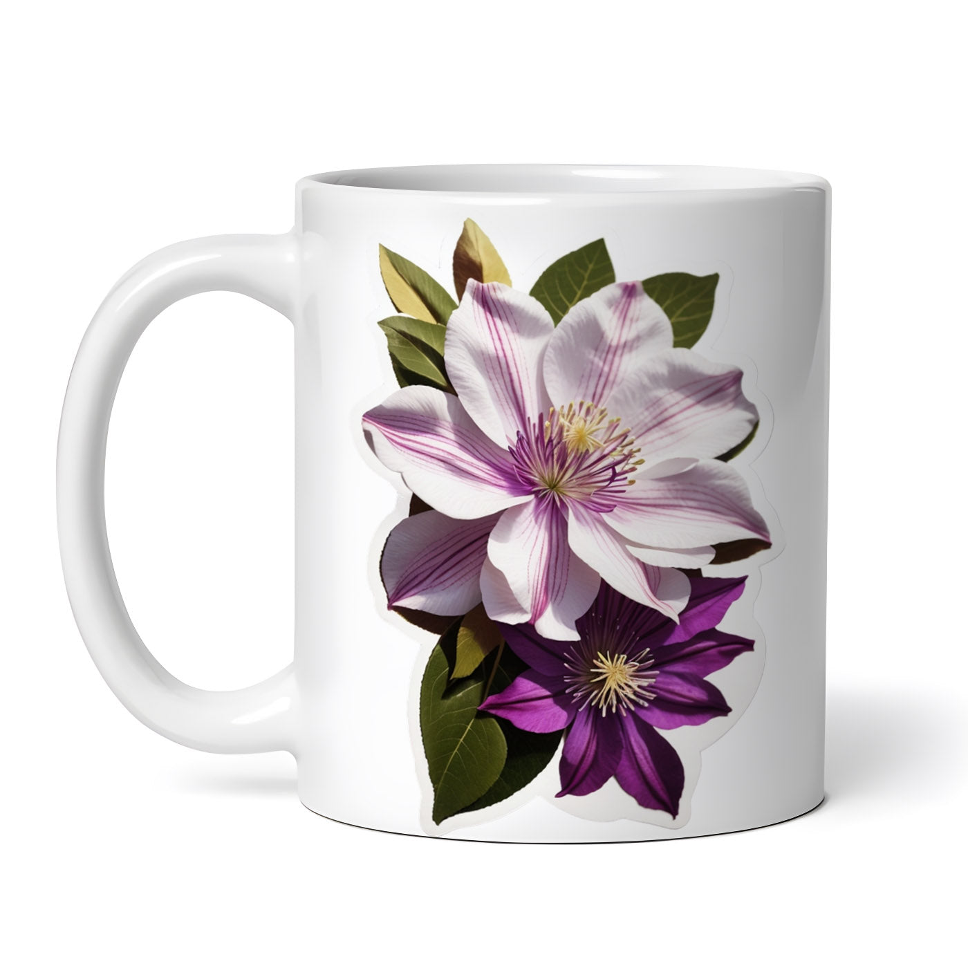Cana ceramica, Flori de Clematis, NO7992, 330 ml, Multicolor