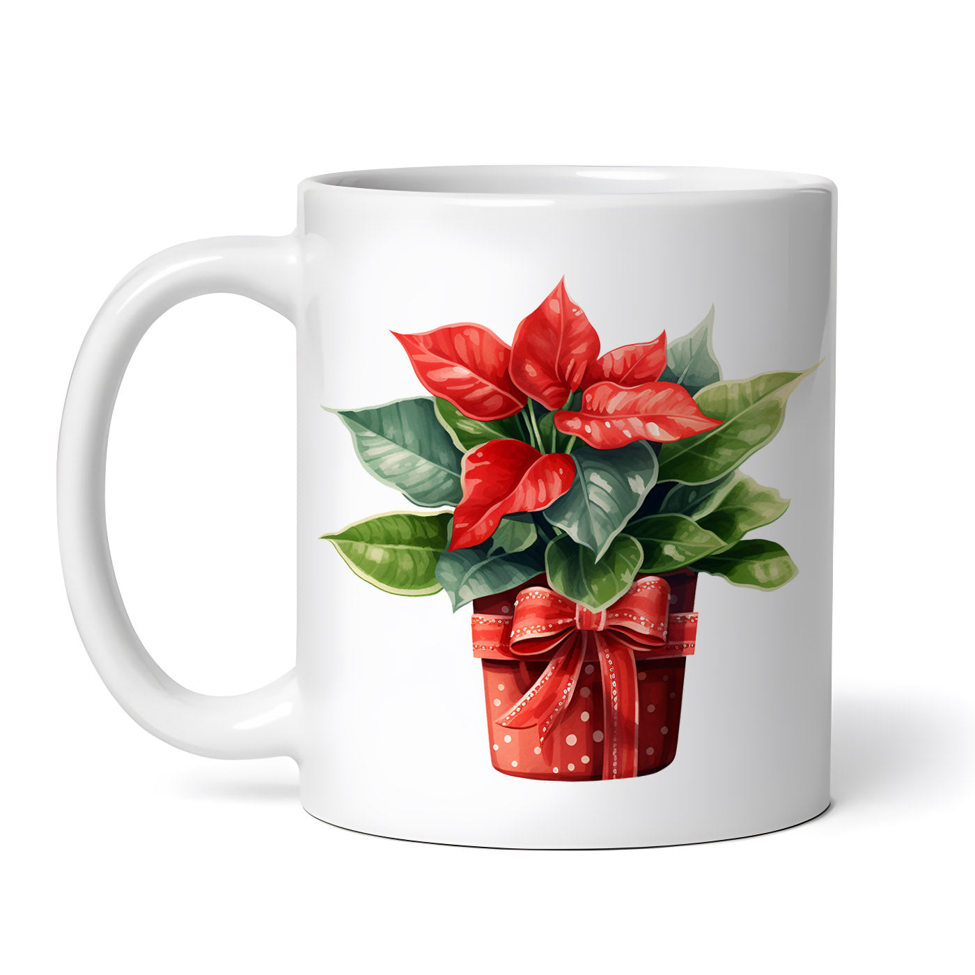 Cana ceramica, Flori de craciun Alicia, NO1148, 330 ml, Multicolor
