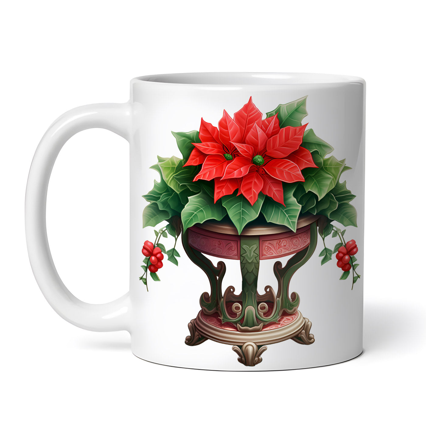 Cana ceramica, Flori de craciun Ava, NO381, 330 ml, Multicolor
