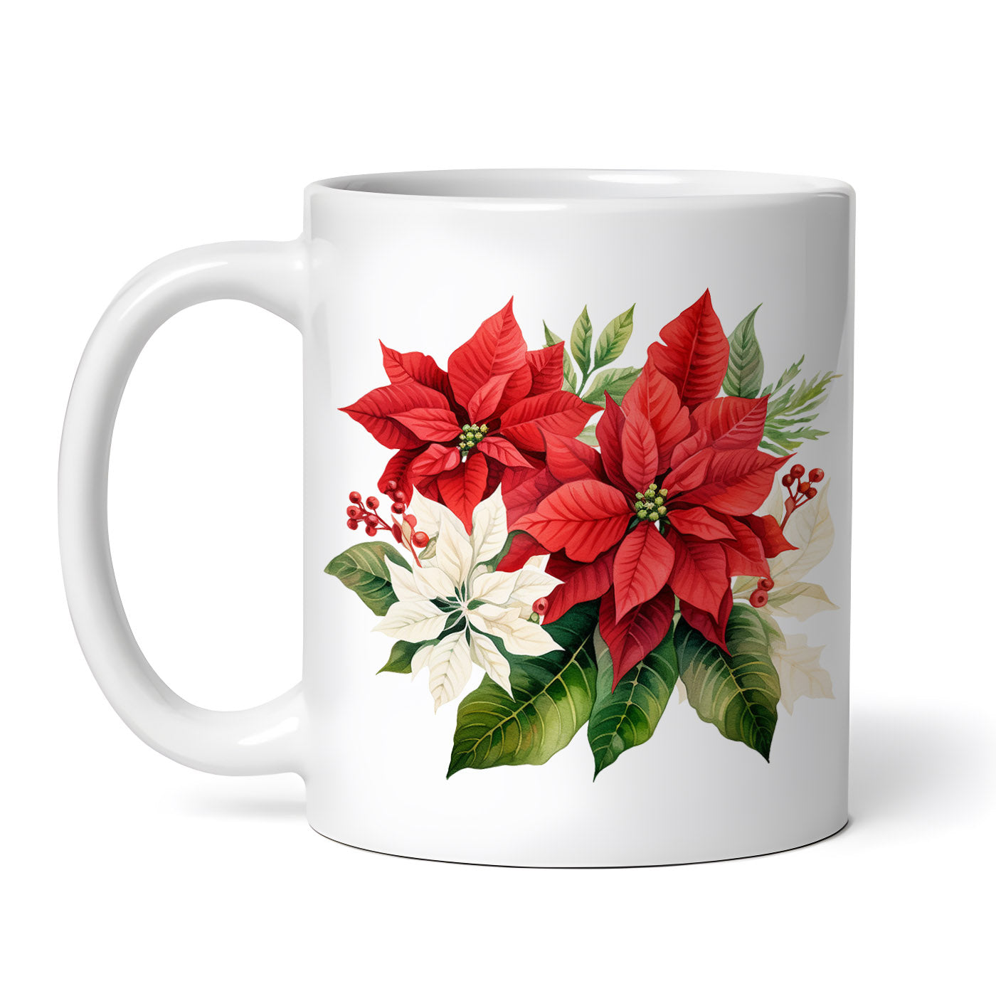 Cana ceramica, Flori de craciun rosii si albe, NO4502, 330 ml, Multicolor
