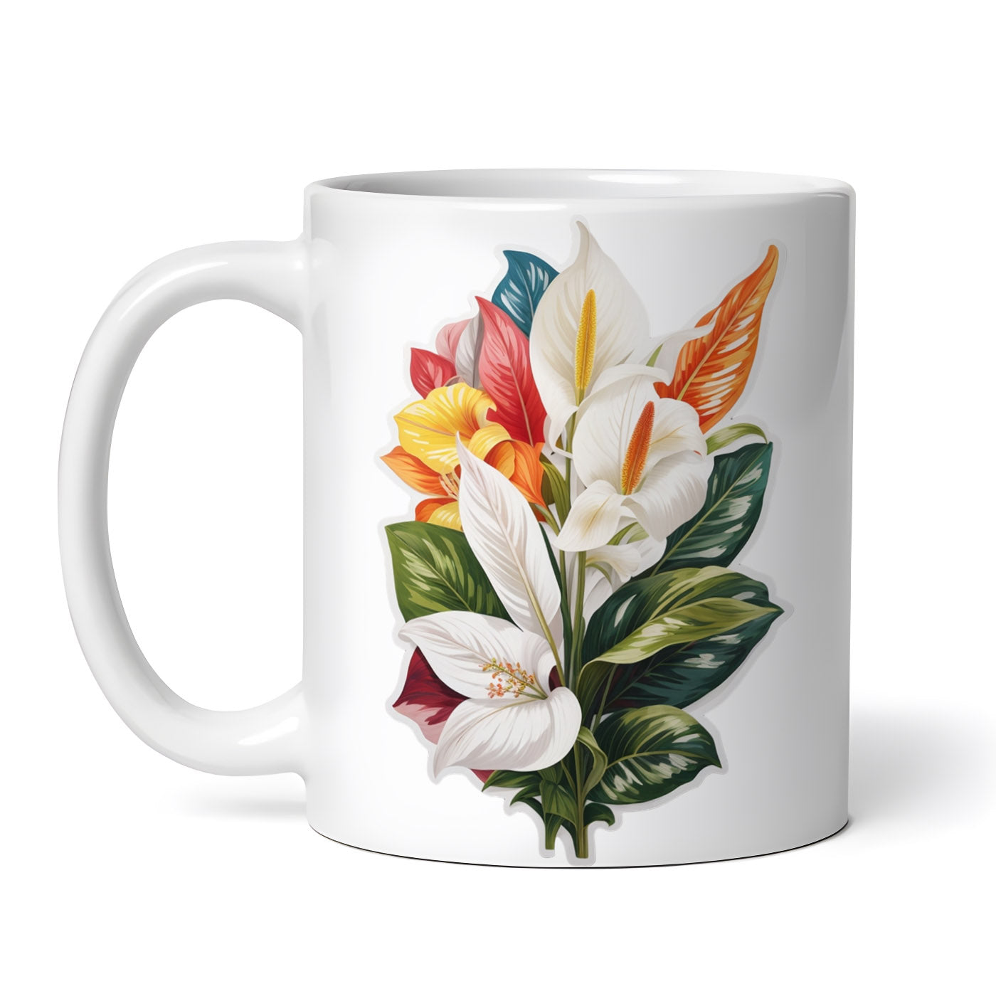 Cana ceramica, Flori de Crinul pacii, NO8673, 330 ml, Multicolor