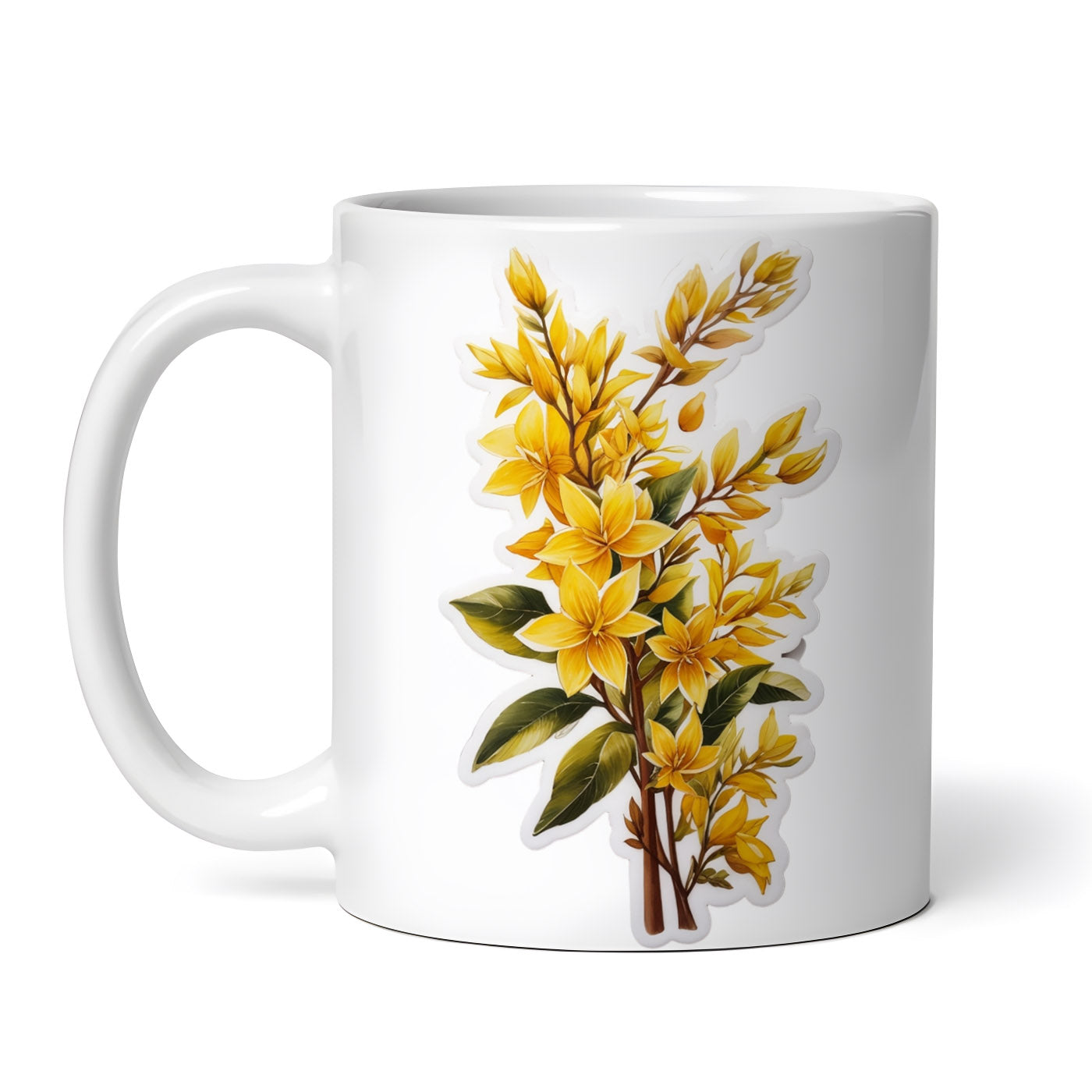 Cana ceramica, Flori de Forsitia, NO8181, 330 ml, Multicolor