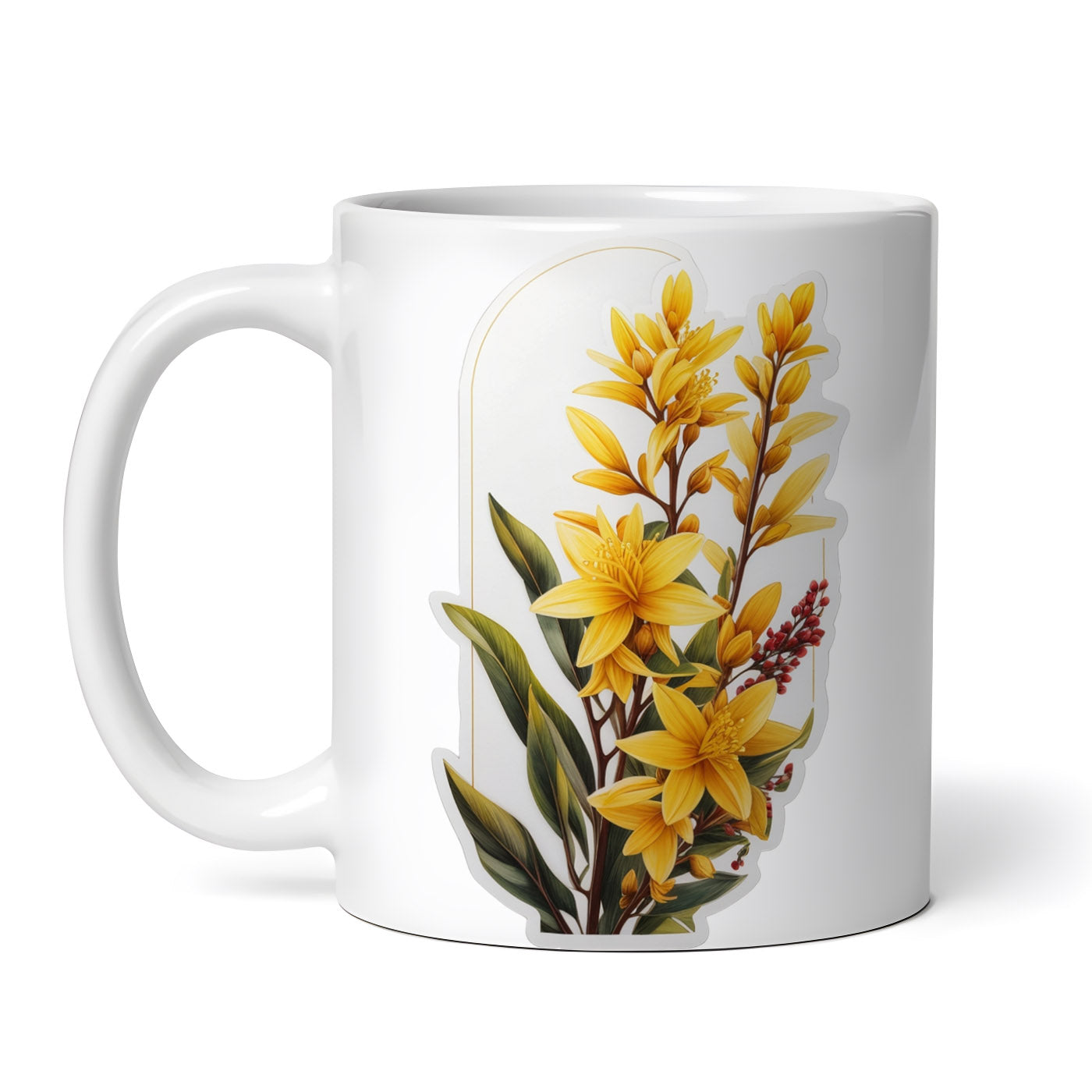 Cana ceramica, Flori de Forsitia, NO8186, 330 ml, Multicolor
