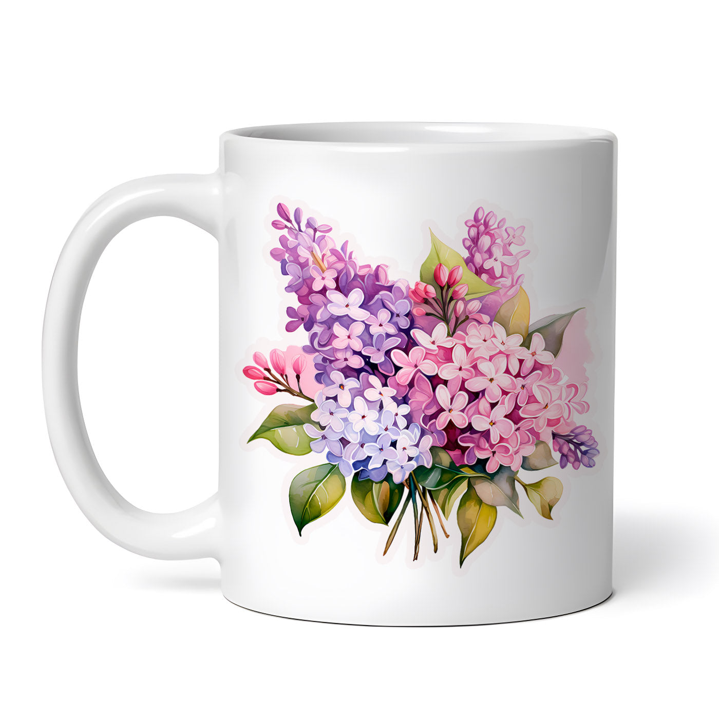 Cana ceramica, Flori de liliac Chloe, NO5801, 330 ml, Multicolor