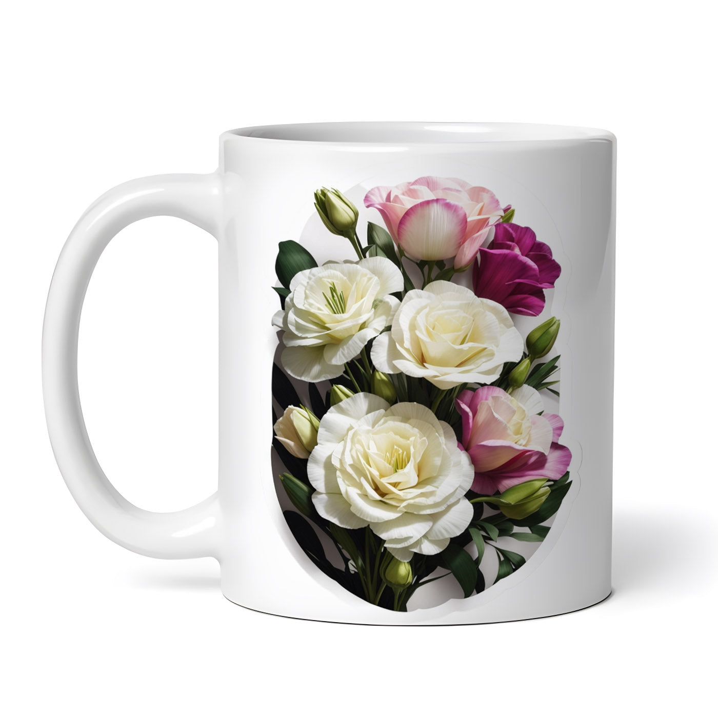 Cana ceramica, Flori de lisianthus, NO8451, 330 ml, Multicolor