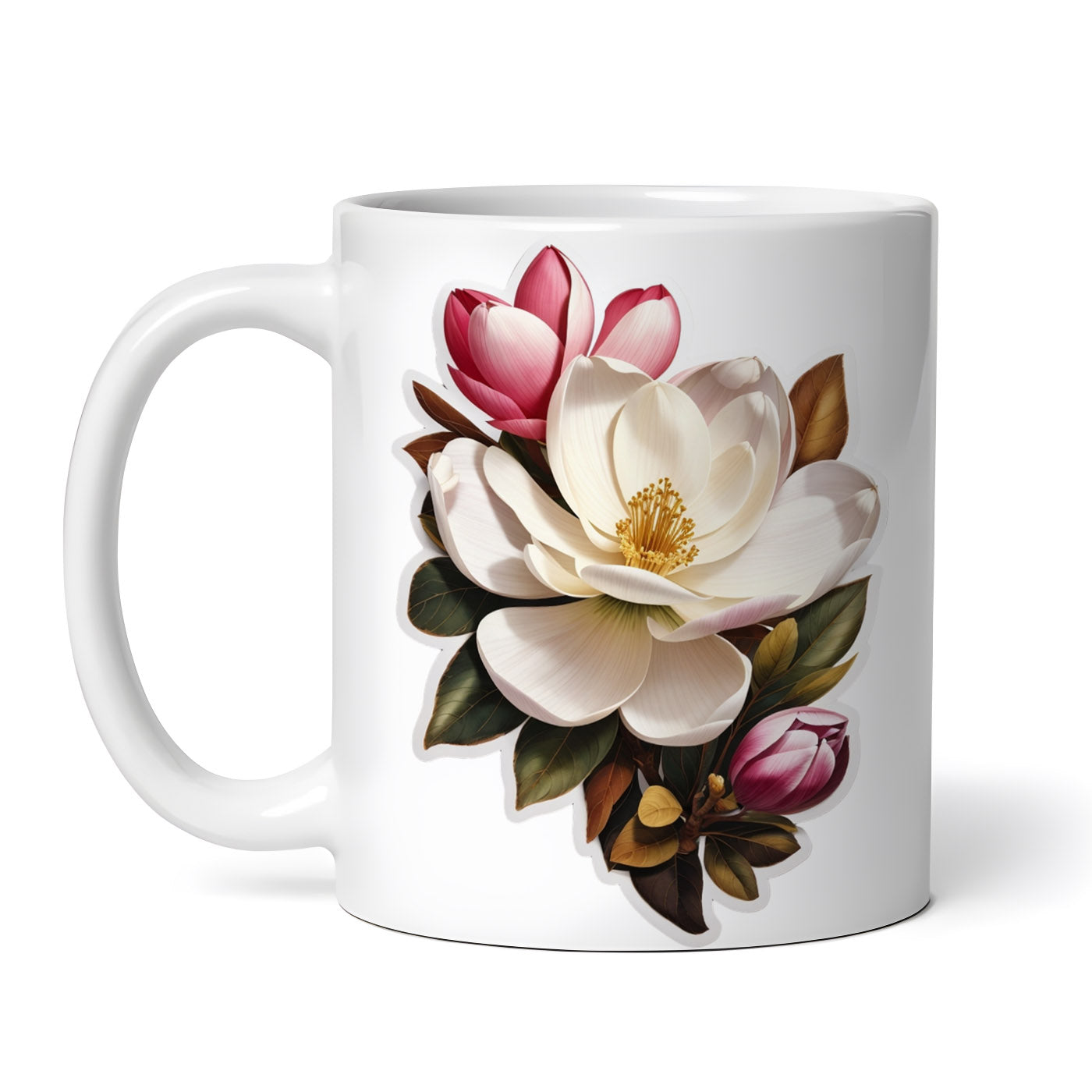 Cana ceramica, Flori de magnolia, NO8489, 330 ml, Multicolor