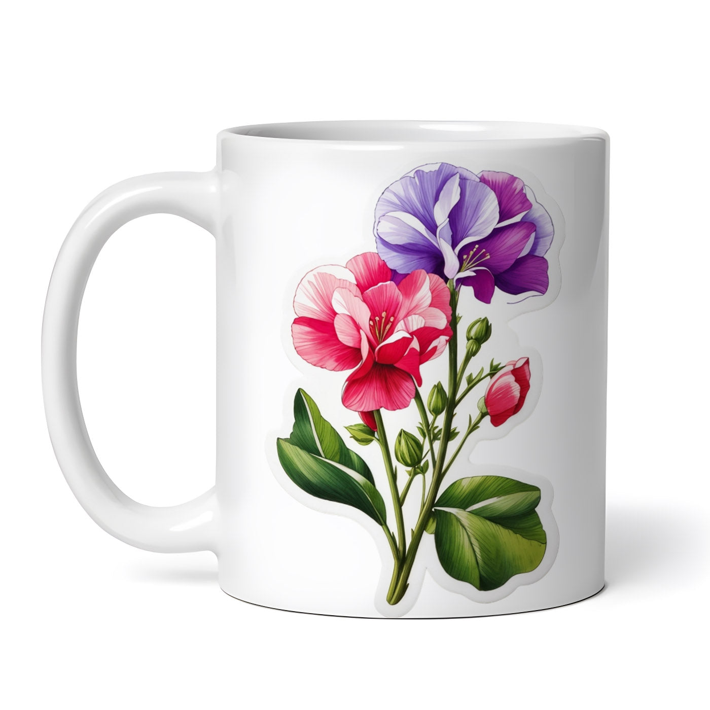 Cana ceramica, Flori de Sweet Pea, NO8939, 330 ml, Multicolor