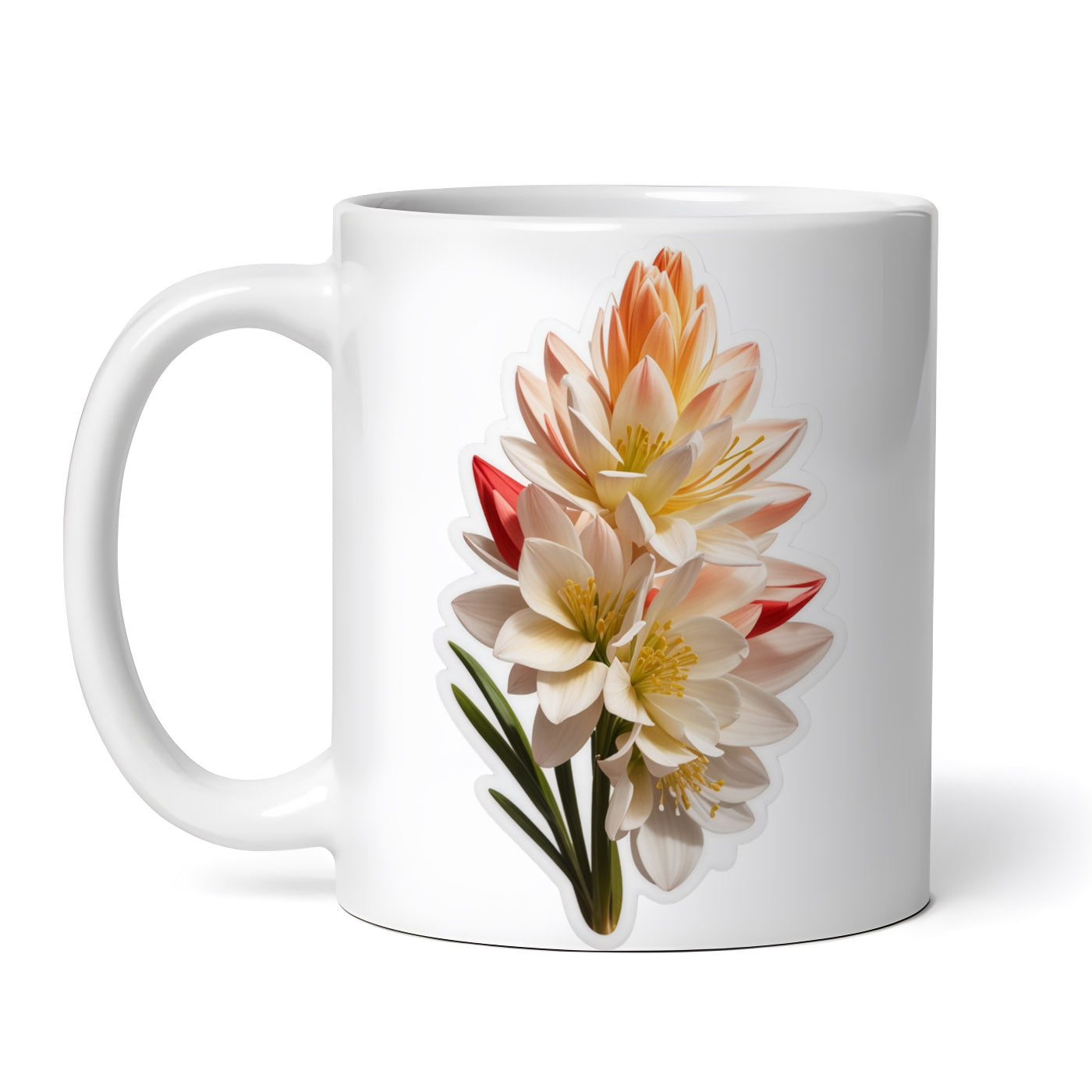 Cana ceramica, Flori de tuberoze, NO8996, 330 ml, Multicolor