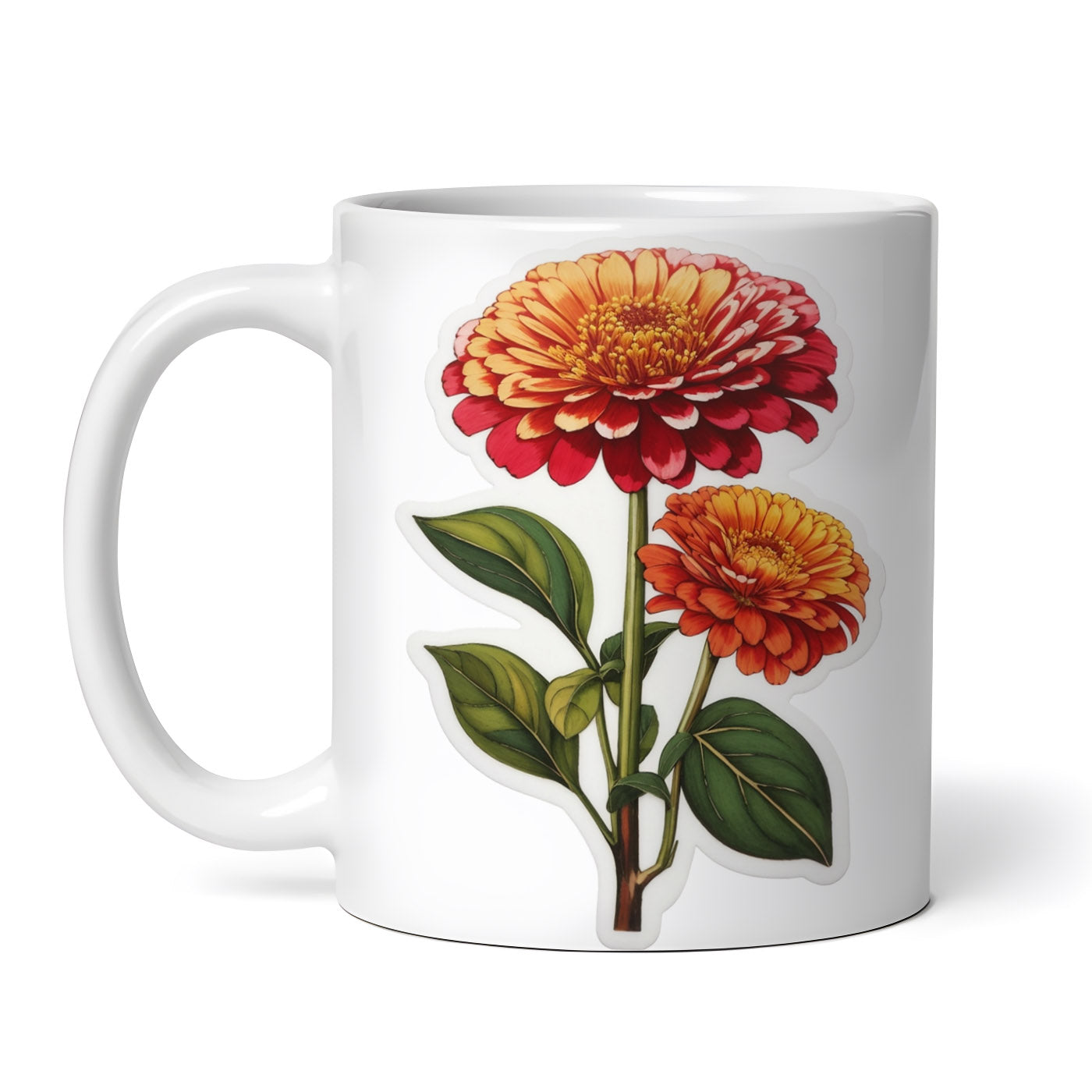 Cana ceramica, Flori de zinnia, NO9098, 330 ml, Multicolor