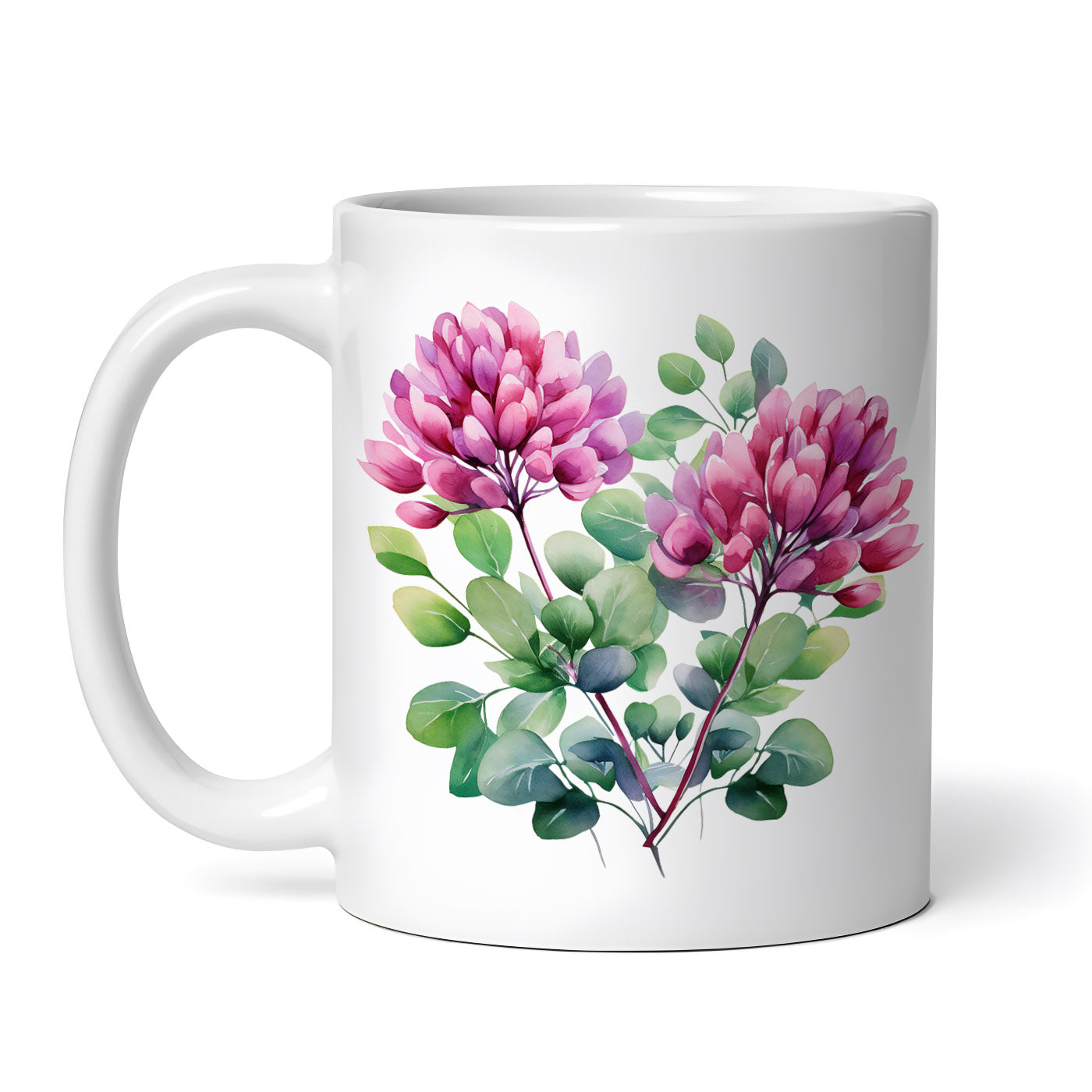 Cana ceramica, Flori rosii de trifoi, NO6320, 330 ml, Multicolor