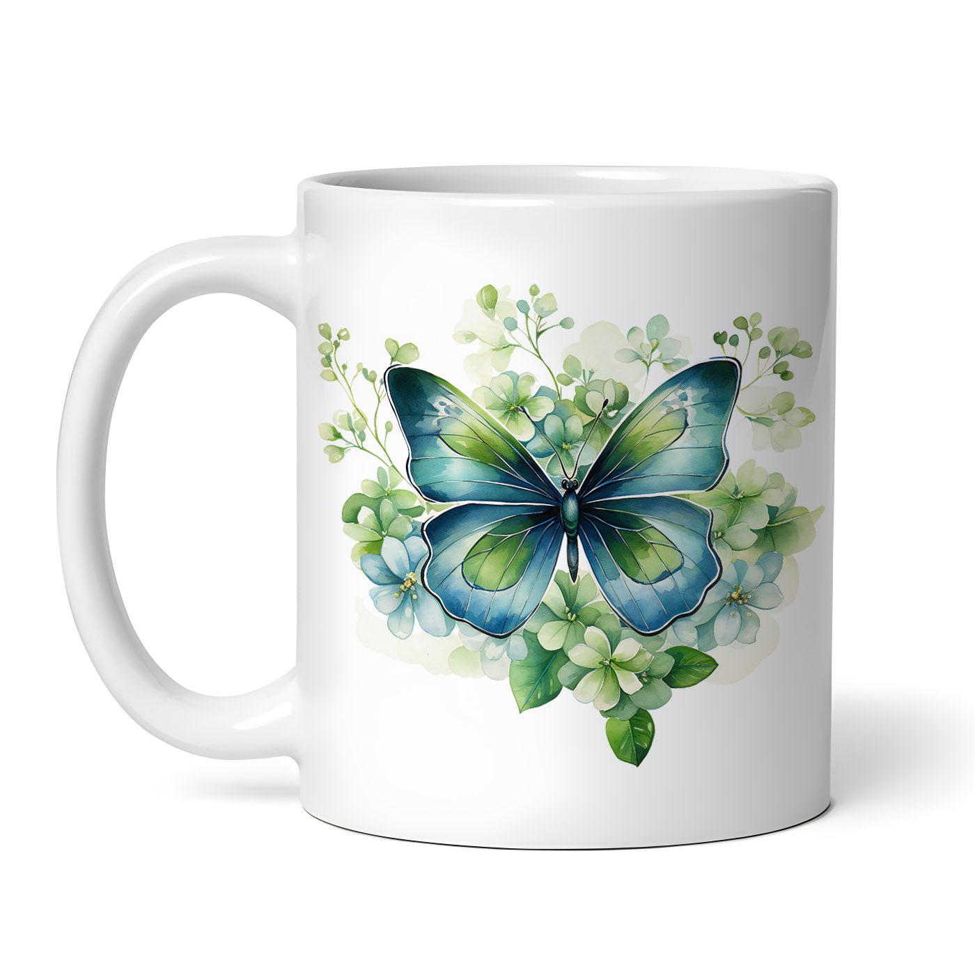Cana ceramica, Fluture albastru pe camp, NO1716, 330 ml, Multicolor
