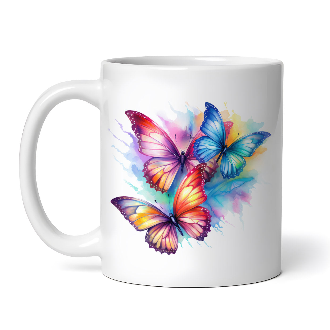 Cana ceramica, Fluturi curcubeu Tropical, NO658, 330 ml, Multicolor
