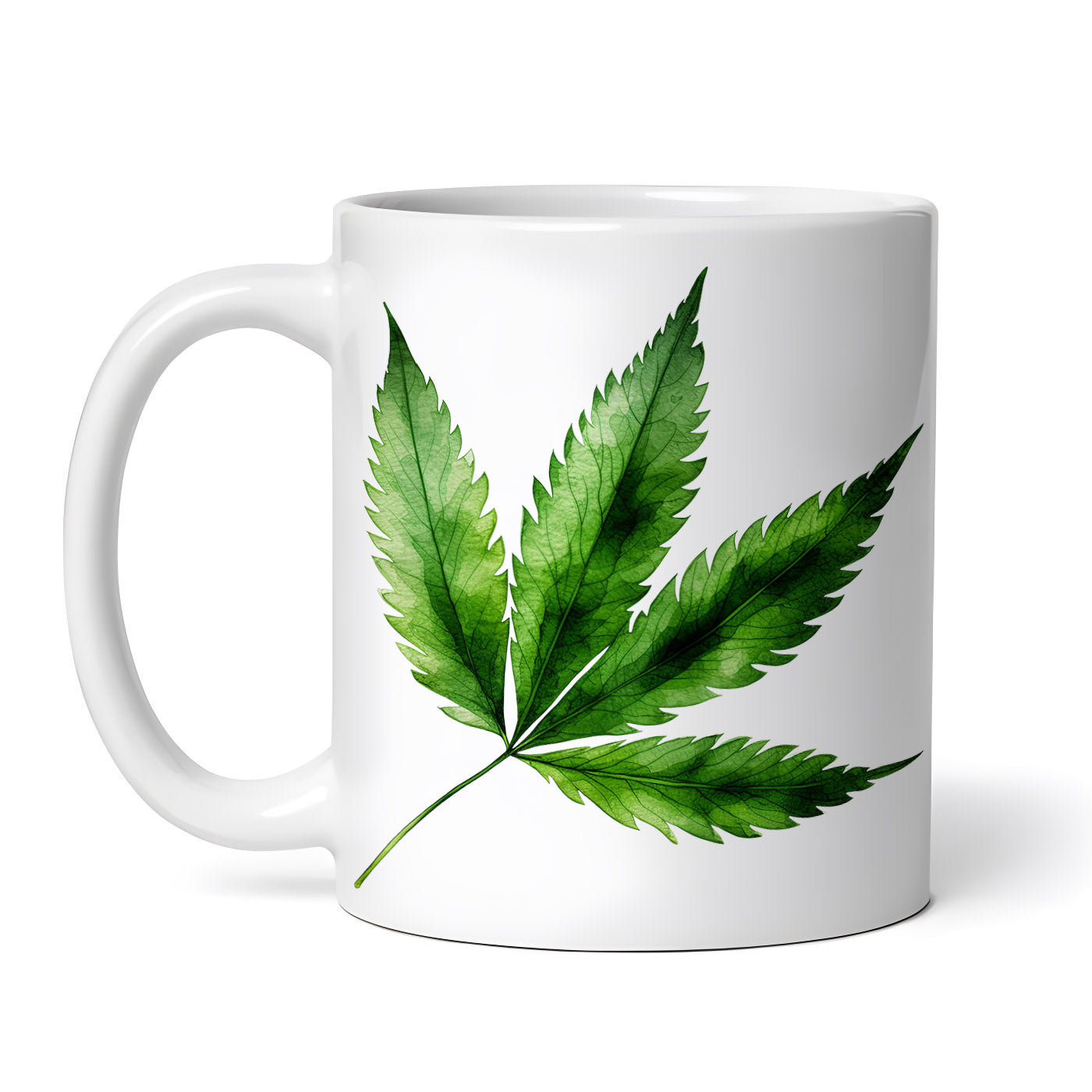 Cana ceramica, Frunza de canabis cu patru foi, NO5145, 330 ml, Multicolor