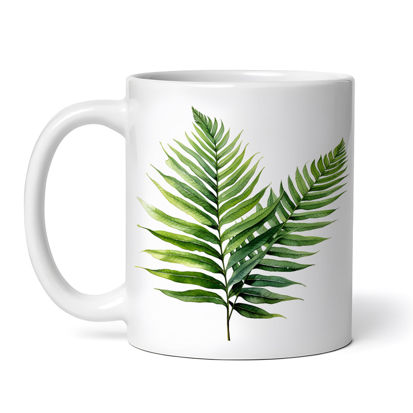 Cana ceramica, Frunze de feriga pe o tulpina, NO1527, 330 ml, Multicolor