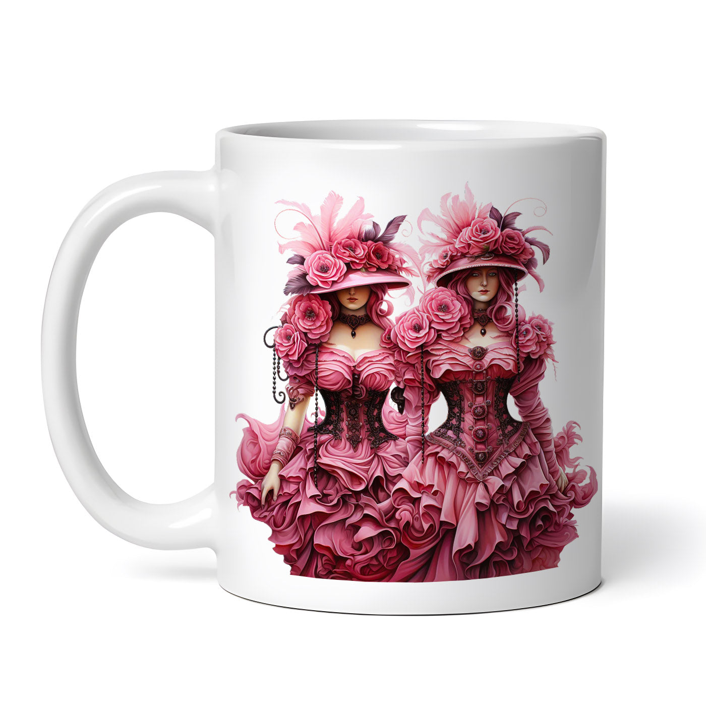 Cana ceramica, Gemenele in rochii roz, NO6325, 330 ml, Multicolor