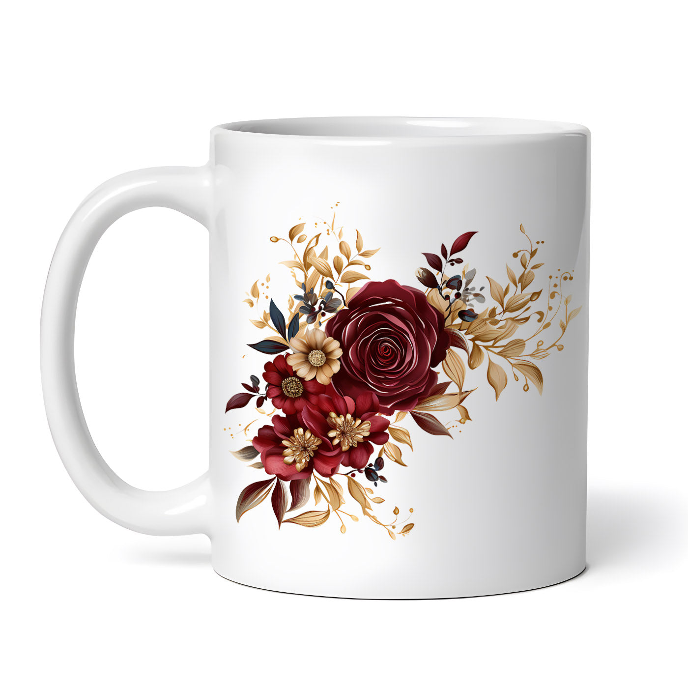Cana ceramica, Ghirlanda de flori rosu cu auriu, NO3931, 330 ml, Multicolor